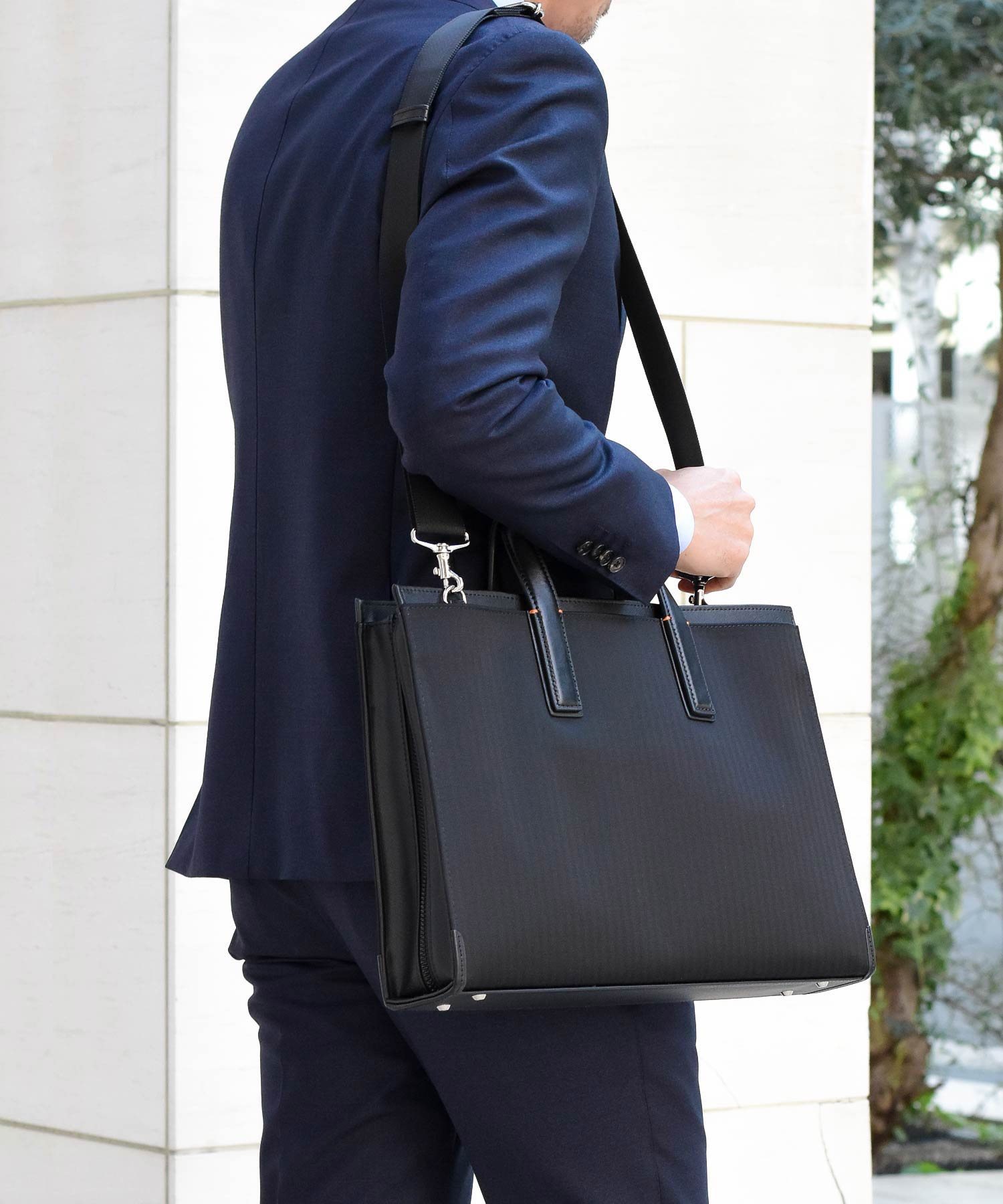 コメント:さりげないストライプ模様にすることで硬くなりすぎずカジュアルさを演出したA4ビジネスバッグです。ビジネススタイルとしても、リクルートバッグとしても幅広くお使いいただけます。