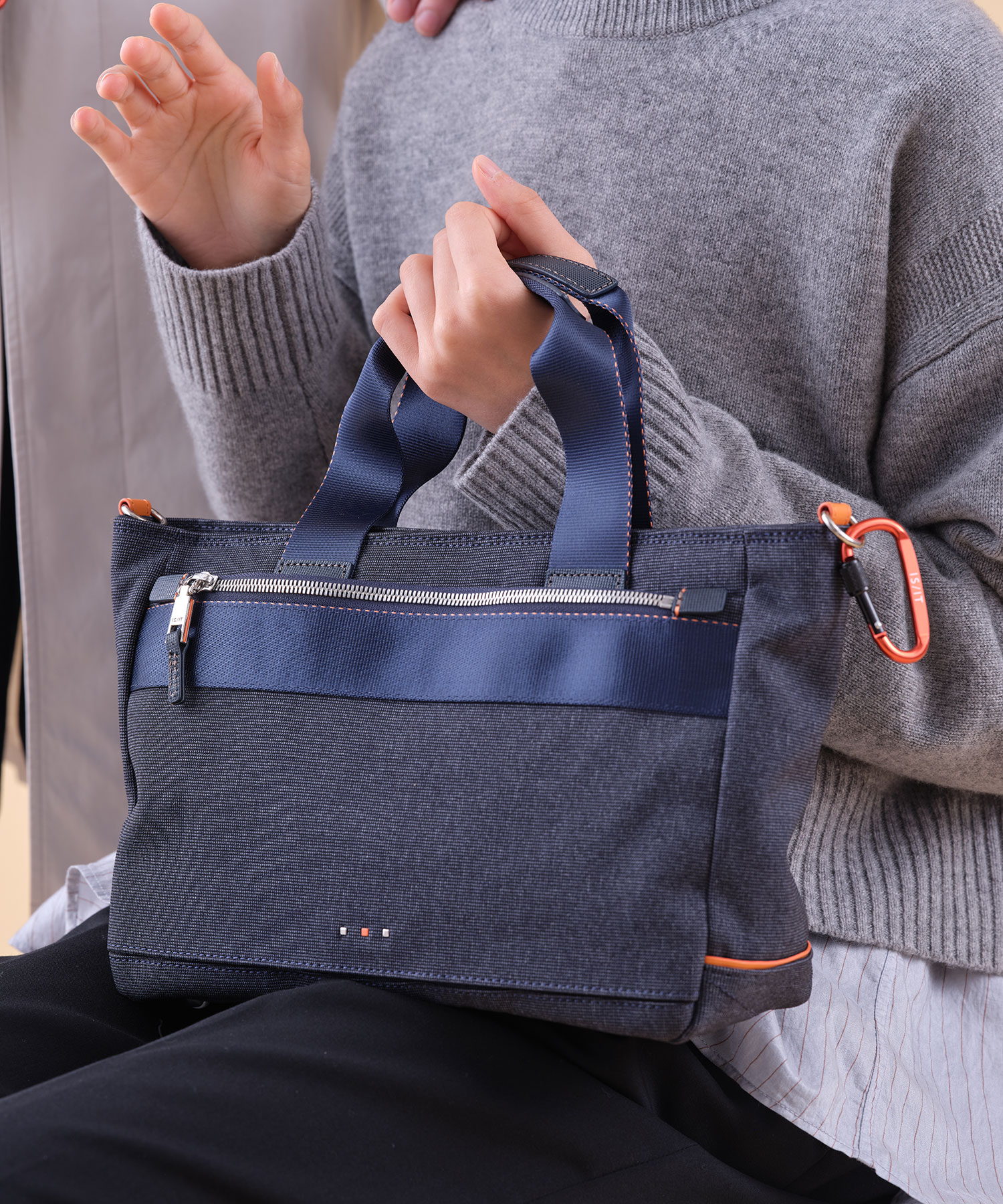 コメント:女性の普段使いに適したサイズ感と、ポケット類が豊富に備わっている機能性あるデザインのトートバッグです。
