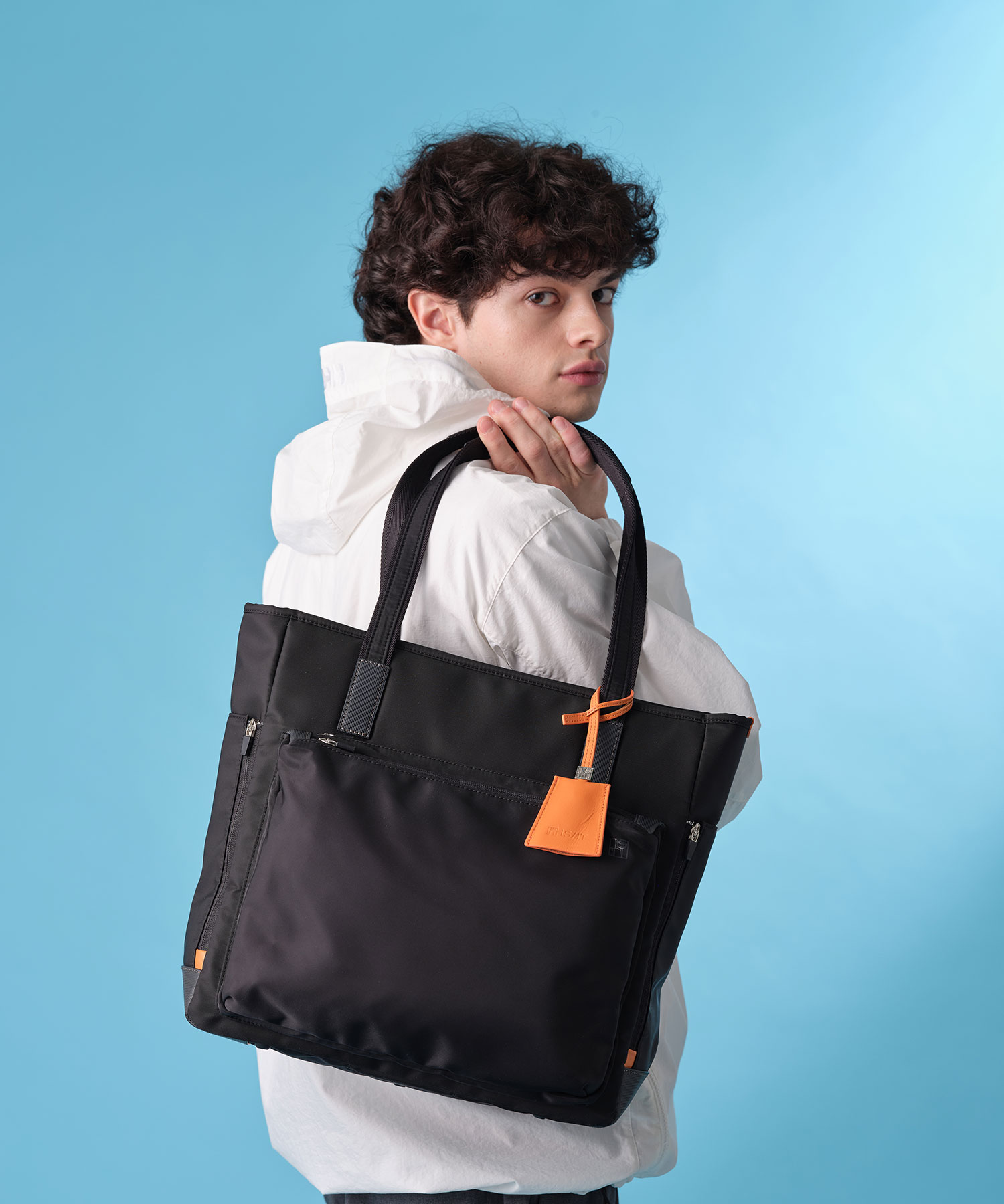 コメント:発色の良いカラーバリエーションでスタイリングのアクセントになり、セットアップ機能があり、収納力に優れたA4トートバッグです。