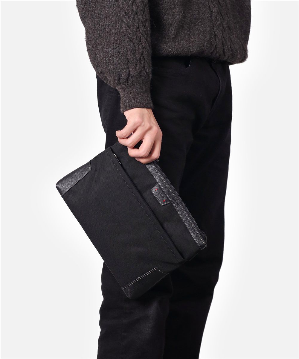 コメント:軽量で丈夫なナイロン素材と防水レザーを使用したクラッチ兼サコッシュバッグ。天候を気にせずデイリーカジュアルに活躍する定番アイテムです。