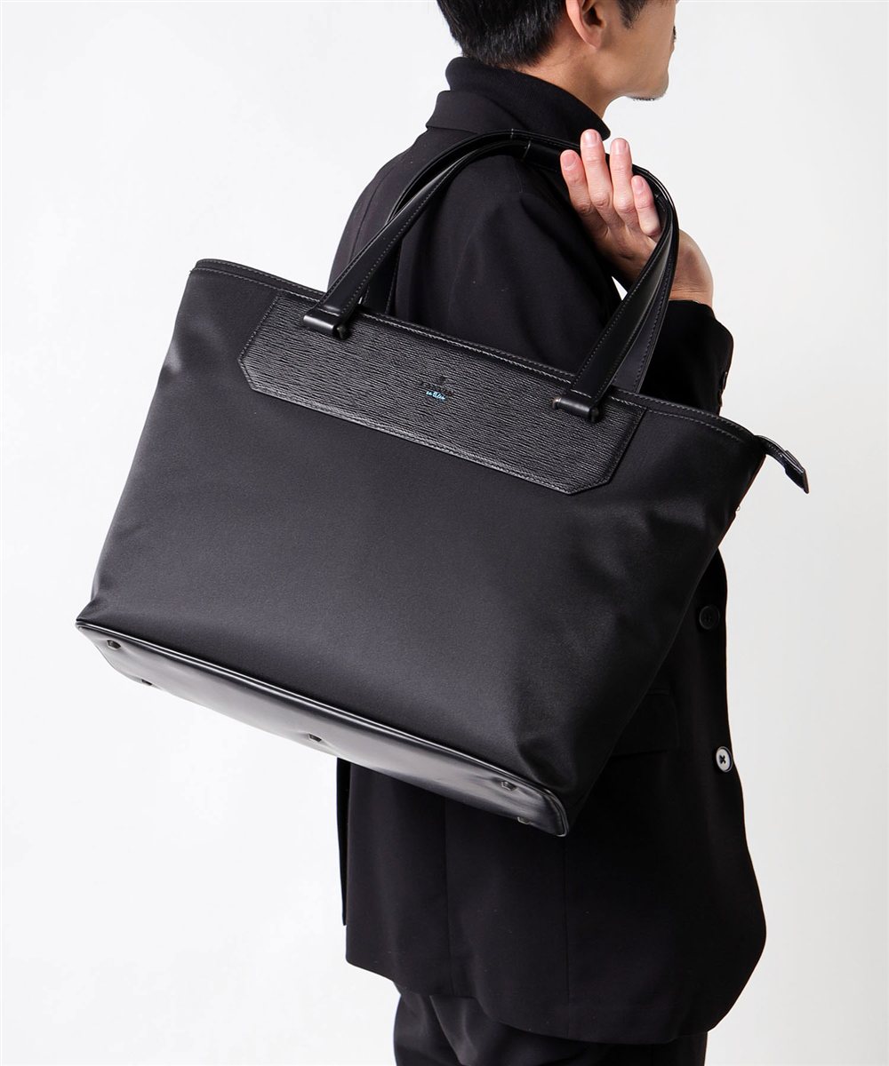 コメント:高撥水なナイロンに一部牛革を合わせた、B4サイズ対応のトートバッグ。書類やPCもすっきり収納でき、通勤や出張などのビジネスシーンに頼れるアイテムです。