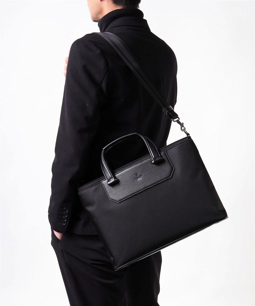 コメント:高撥水ナイロンに一部牛革を合わせた、A4ジャストサイズの2WAYビジネスバッグ。手持ちも斜め掛けもできる仕様で、通勤や外回りに便利な万能アイテムです。