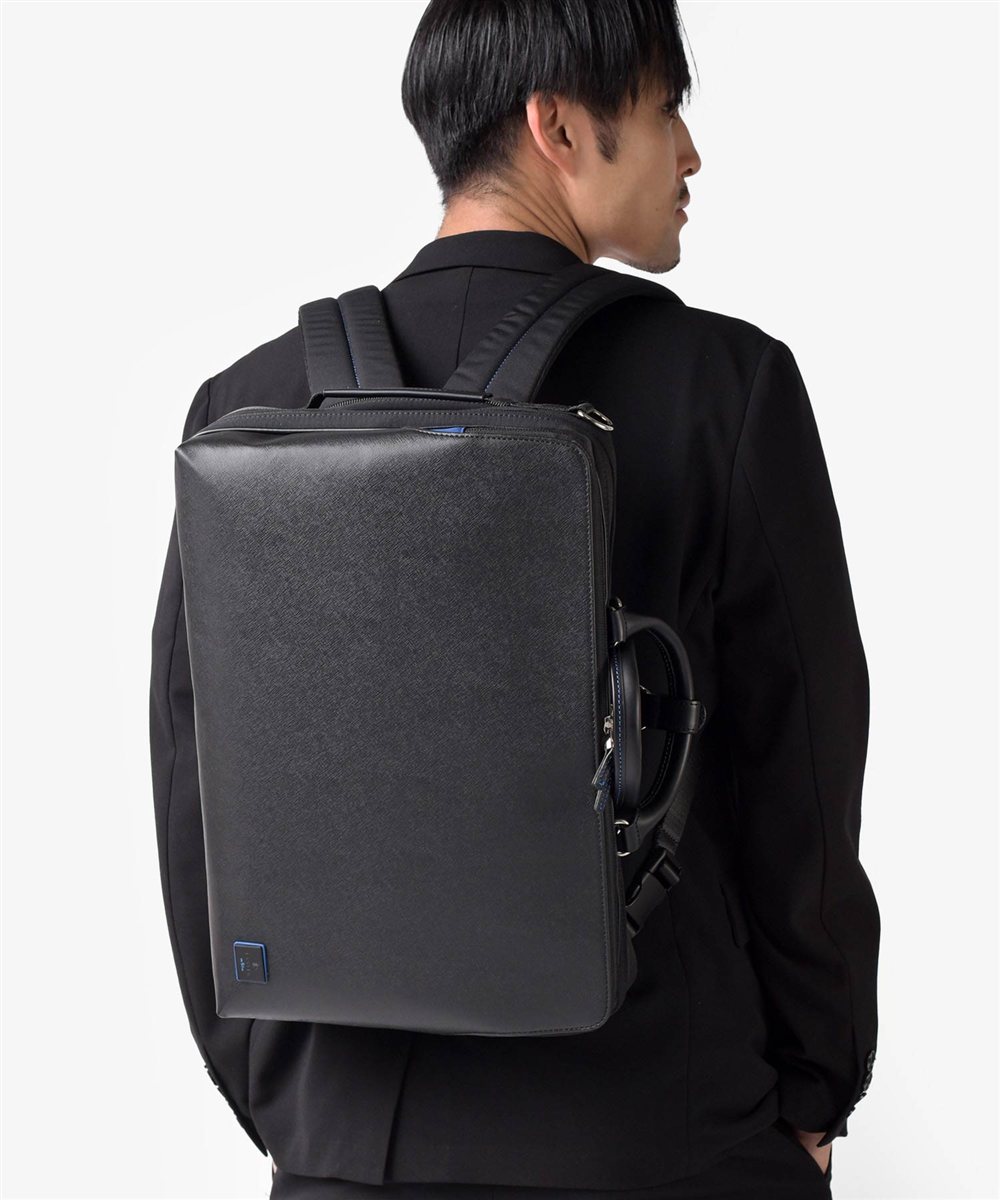 コメント:撥水性素材を使用し、一部に牛革をあしらったA4サイズ対応のセミハードビジネスバッグ。リュック・手持ち・ショルダーの3WAY仕様で、通勤から外出先での打ち合わせまで幅広く対応します。