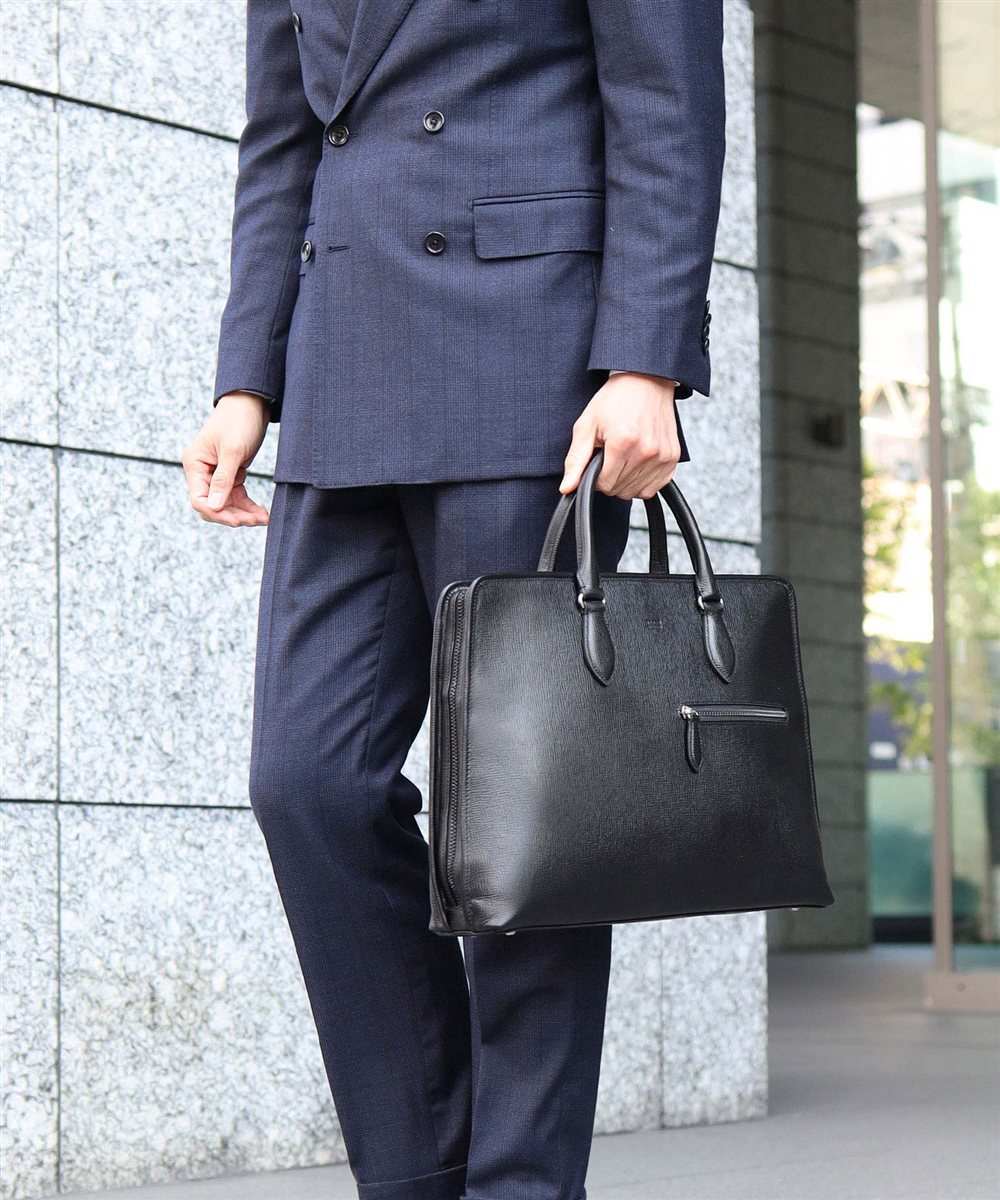 コメント:シンプルでスタイリッシュなデザインがスーツスタイルを格上げするA4サイズビジネスバッグ。A4ファイルやPCも収納できる機能性で、ビジネスシーンで幅広く活躍します。
