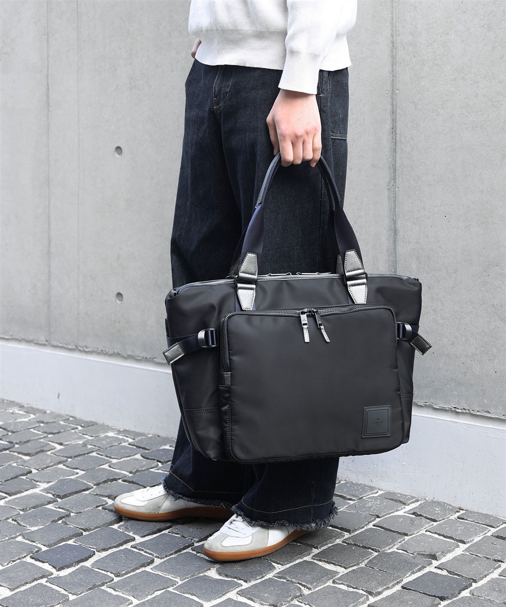コメント:高密度ナイロン×PVCの艶感が魅力のB4サイズトートバッグ。荷物が多い日も安心、通勤から小旅行までスマートに対応します。