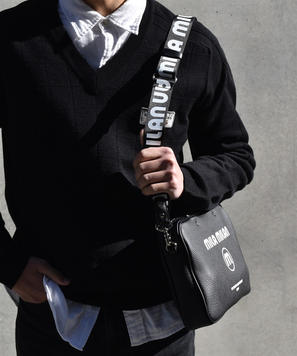 コメント:モノトーンロゴが印象的なコンパクトなミニブリーフバッグ。スマホや小物の持ち運びに便利で、ユニセックスで使えるアイテムです。