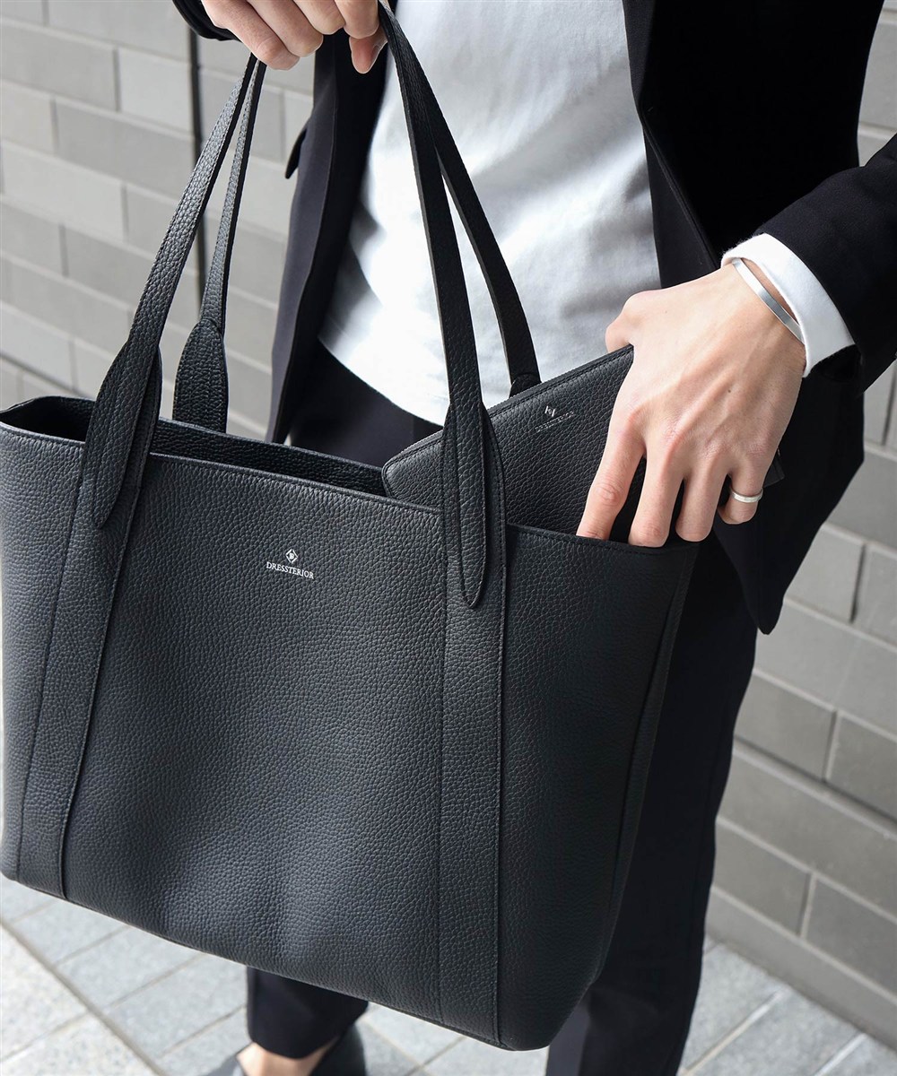 コメント:ジェンダーニュートラルなデザインのトートバッグは、コンパクトながらA4サイズや13.3インチノートパソコンも収納可能。上質な本革とクラシカルなディテールで、カジュアルからオフィスまで幅広く活躍し、コーディネートに洗練された印象をプラスします。