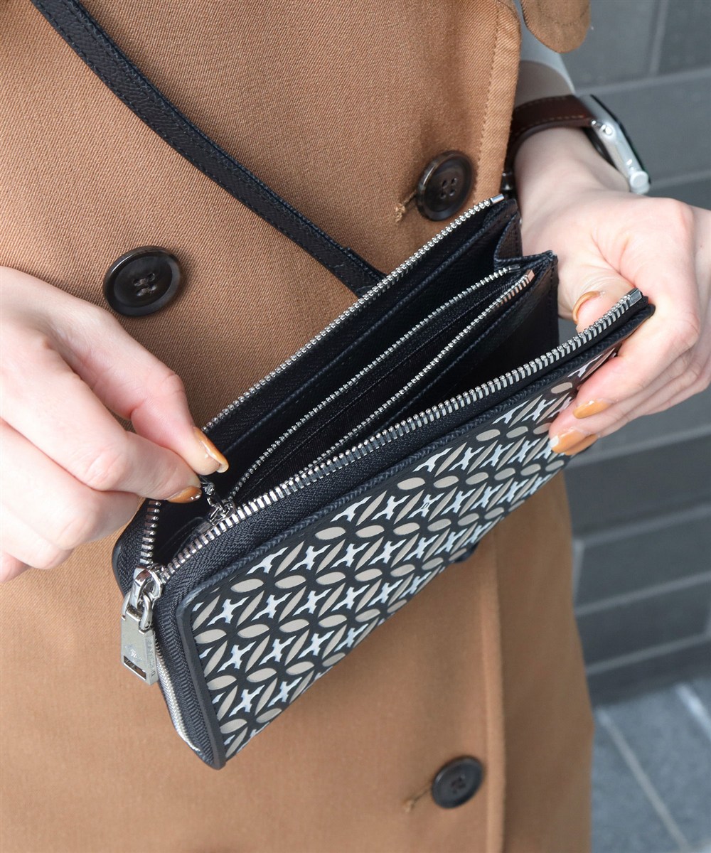 コメント:上質な牛革とお財布機能を備え、ちょっとしたお出かけや旅行に最適なスマホショルダーバッグ。女性も使用しやすいデザインで、カジュアルにもスタイリッシュにも合わせられます。
