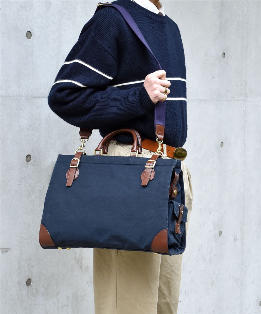 コメント:ネイビー×チョコ革の落ち着いた配色が大人の装いに映える9号帆布ボストンバッグ。2WAY仕様でショルダーでも手持ちでも使え、旅行やお出かけに最適です。撥水性に優れた帆布と多彩なポケットで、荷物の整理もスマートに行えます。