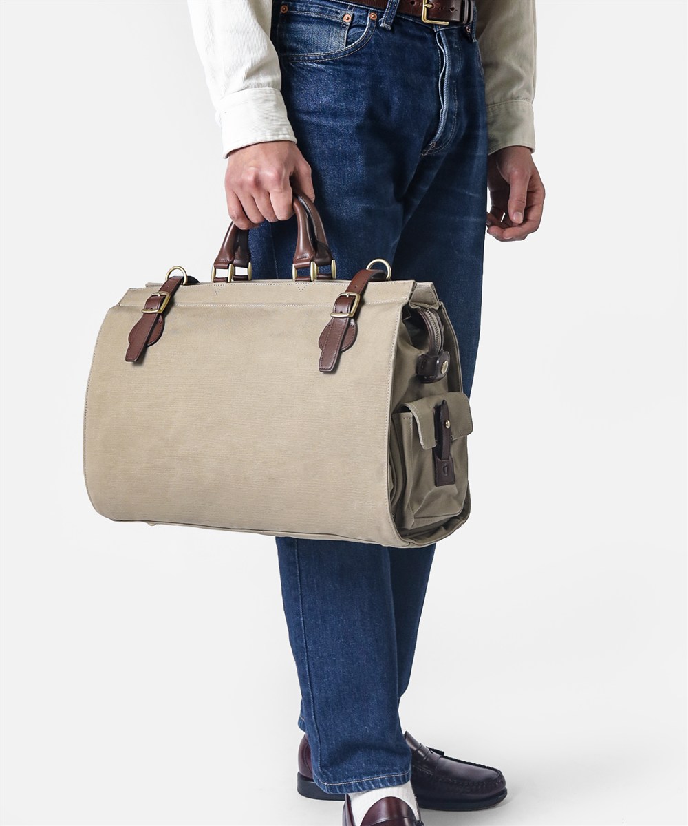 コメント:丈夫な帆布にパラフィン加工を施した40cm幅のボストンバッグ。出張や旅行はもちろん、アウトドアや週末のお出かけにも活躍する頼もしいアイテムです。