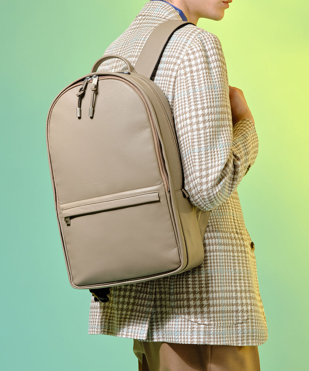 コメント:上質なイタリアンレザーを使用したB4サイズのかぶせトートバッグ。マットな質感と柔らかな手触りが魅力で、15インチPC対応の充実した収納設計。通勤や出張など、オン・オフ問わず活躍する上品なレザーバッグです。