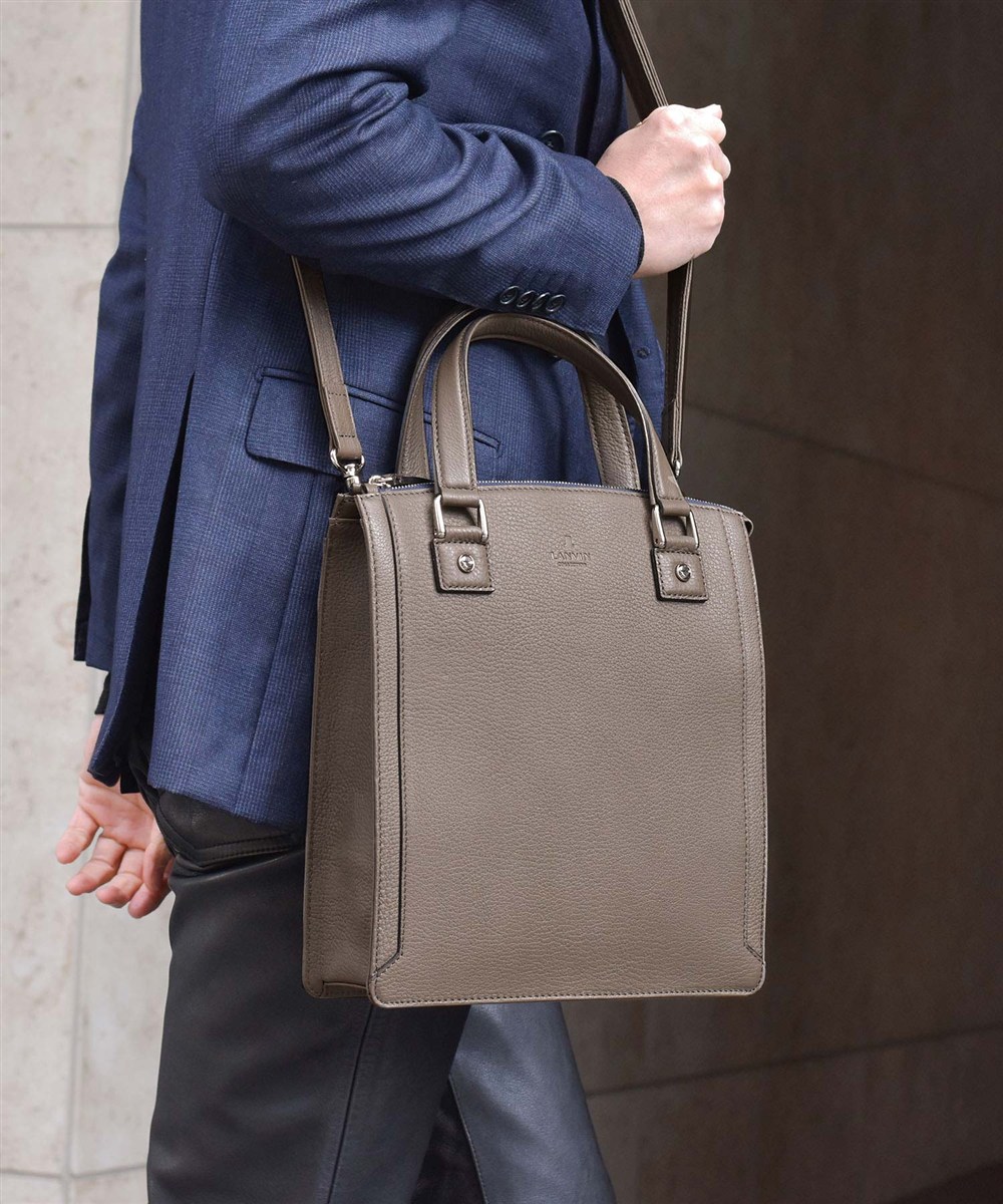 コメント:手間暇かけたシュリンクソフトレザーを使用した、B5サイズ対応のトートバッグ。手持ちとショルダーを使い分け、休日の散策やオフの日を上品なソフトレザーと楽しめます。