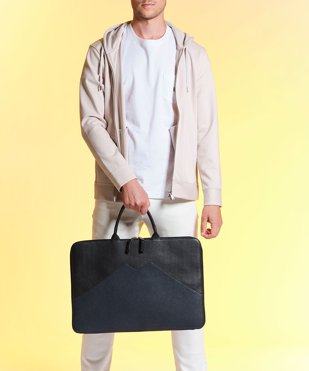 コメント:日本を代表する音楽プロデューサー 松任谷正隆氏とフジタカがコラボレーションした、A3サイズのスマートブリーフケース。松任谷氏愛用の楽譜がA3クリアファイルごと収納出来る、大きめのサイズです。