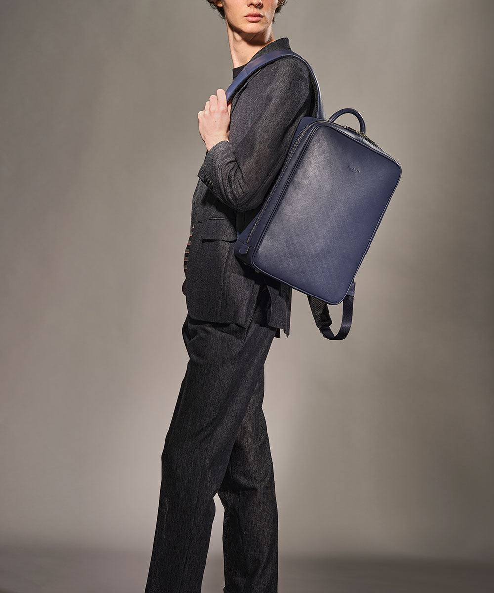 コメント:上品さと高級感をあわせもったA4サイズのビジネスリュック。ナチュラルに入れられた型押しが、シンプルでモダンな印象を演出します。