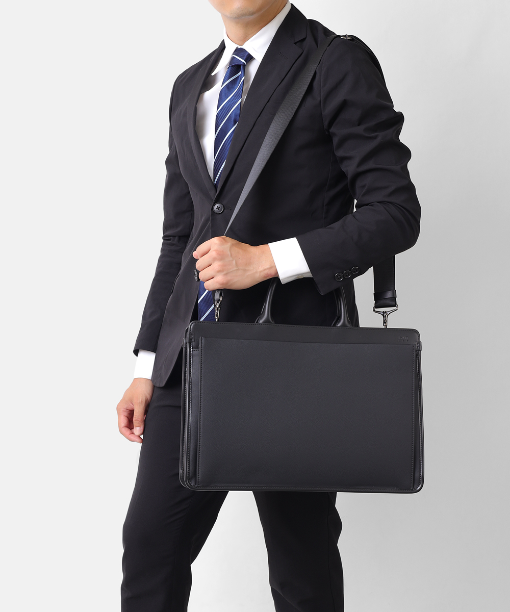 コメント:装飾が少なくシンプルかつオールブラックカラーに仕上げていますので、就活生から社会人まで幅広い年代でお使いいただるビジネスバッグです。