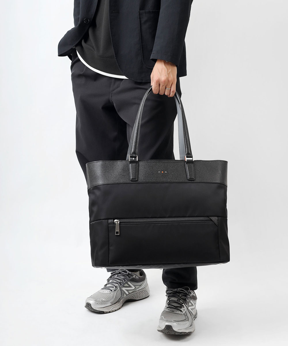 コメント:上品な光沢感が魅力のナイロンツイルを使用した、ユニセックス仕様の横型ビジネストートバッグ。A4書類や13.3インチノートPCがすっきり収まる設計で、毎日の通勤や出張にも最適です。
