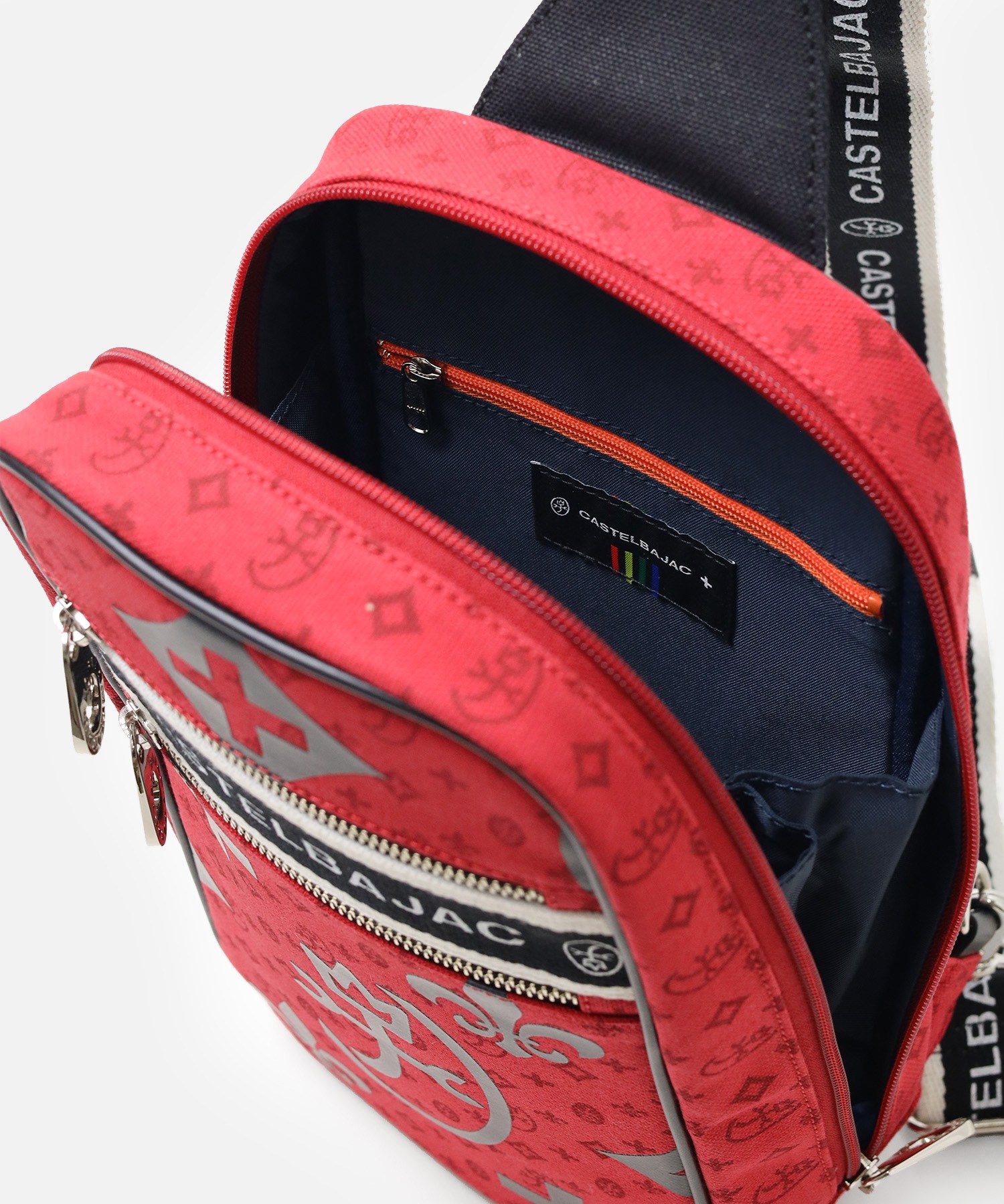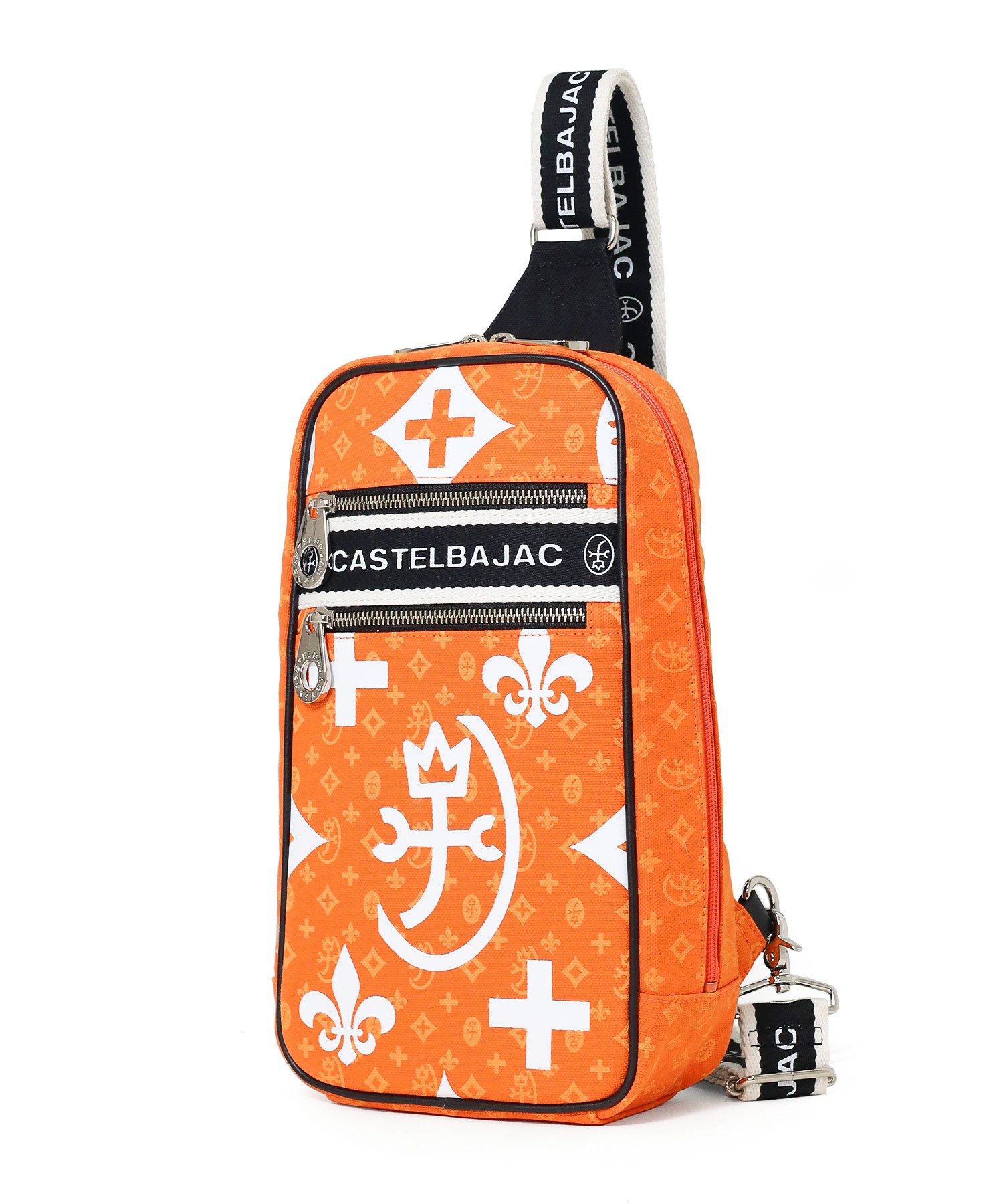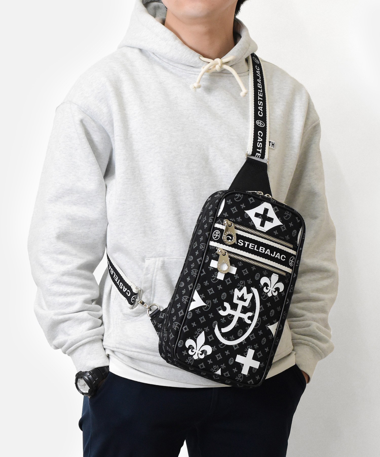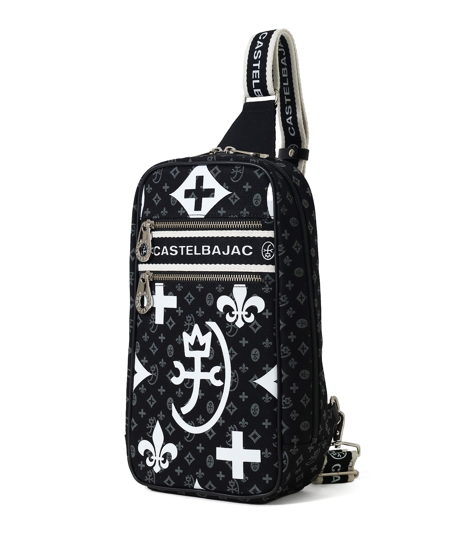 カステルバジャックの代名詞であるモノグラムをダブルでプリントし表現したデザイン。使いやすい本体素材と実用性のある収納ポケットも多く、使いやすいワンショルダーバッグです。