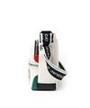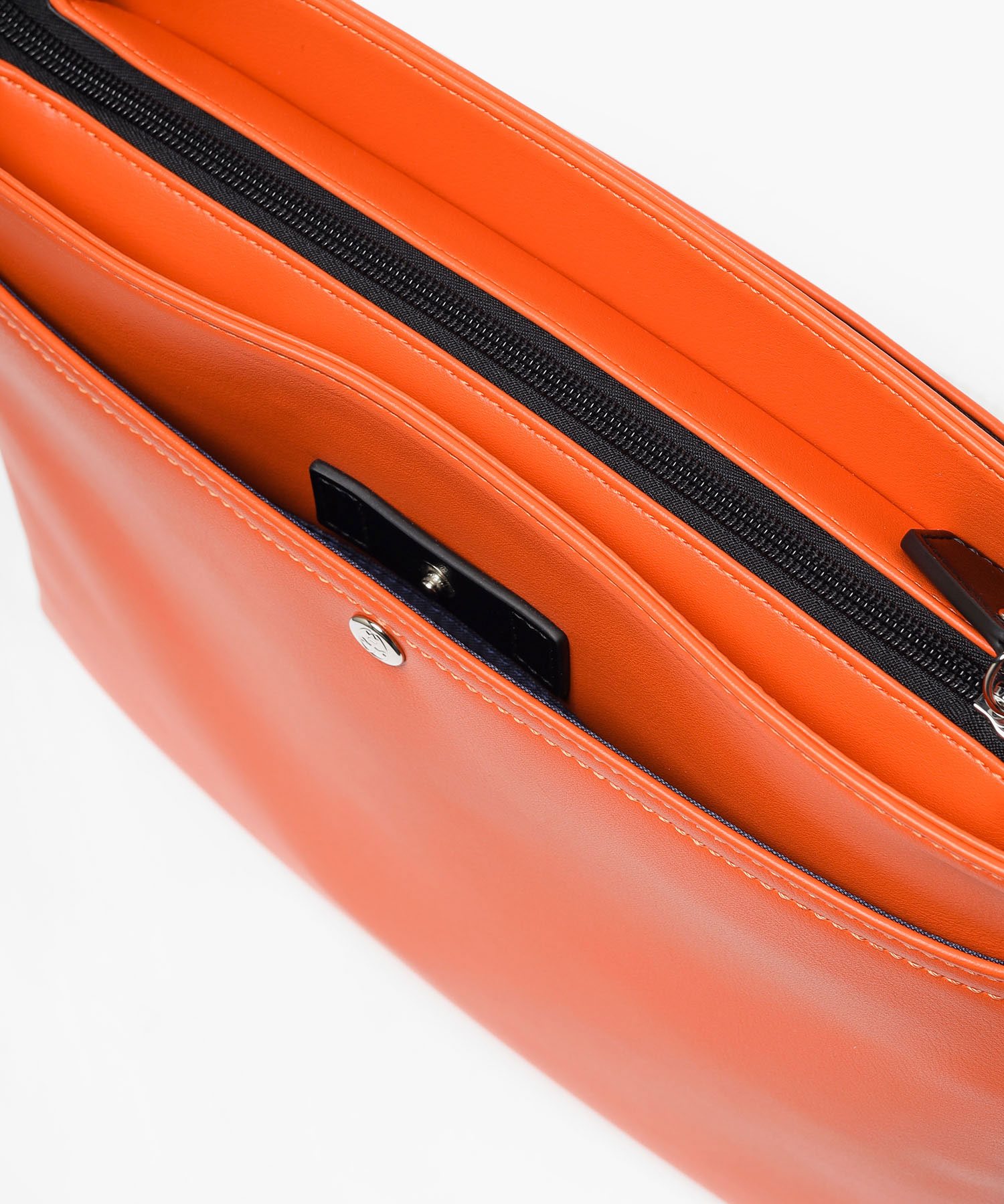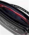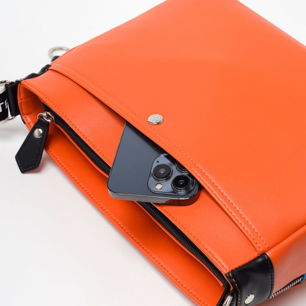 メインルームはB5サイズのノートや500mlのペットボトルが横向きに収納可能なサイズで、ファスナーポケットが1つとオープンポケットが2つあります。前面にはファスナーポケット、背面にはホック付きのポケットがあり、すぐに取り出したい物の収納に便利です。また、内装にはフランスをイメージしたトリコロールカラーを配色し、開けた瞬間に気分が高まる遊び心のあるデザインもポイントです。