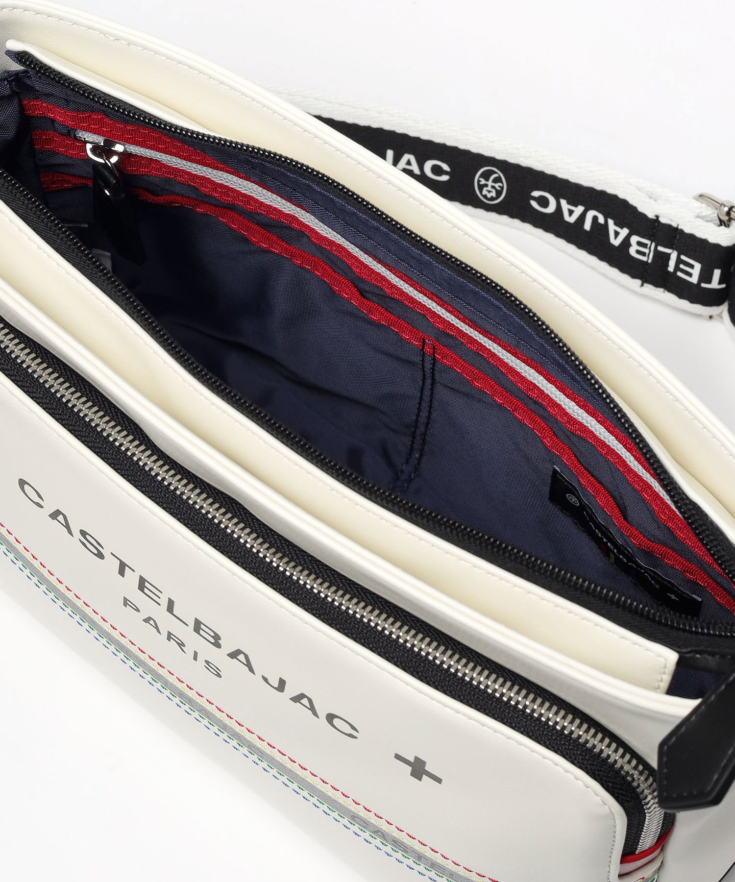 トラベルからタウンユースまで幅広く活躍する、カステルバジャックのB5サイズのカジュアルショルダーバッグ。スムース調のポリウレタン合皮を使用しており、扱いやすく上品な質感が魅力です。雨や汚れにも比較的強く、デイリー使いはもちろん、旅行や移動の多いシーンでも気兼ねなくお使いいただけます。