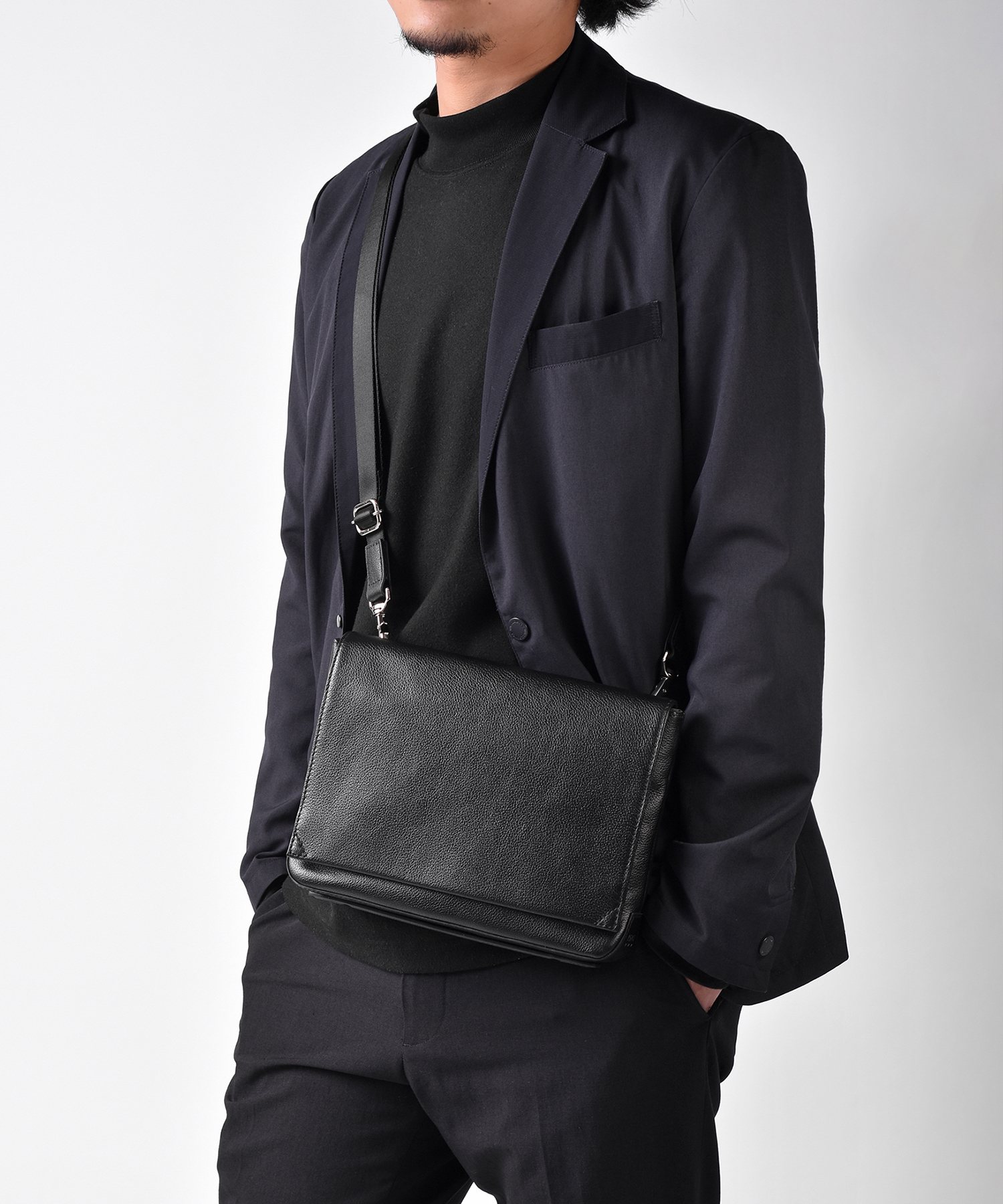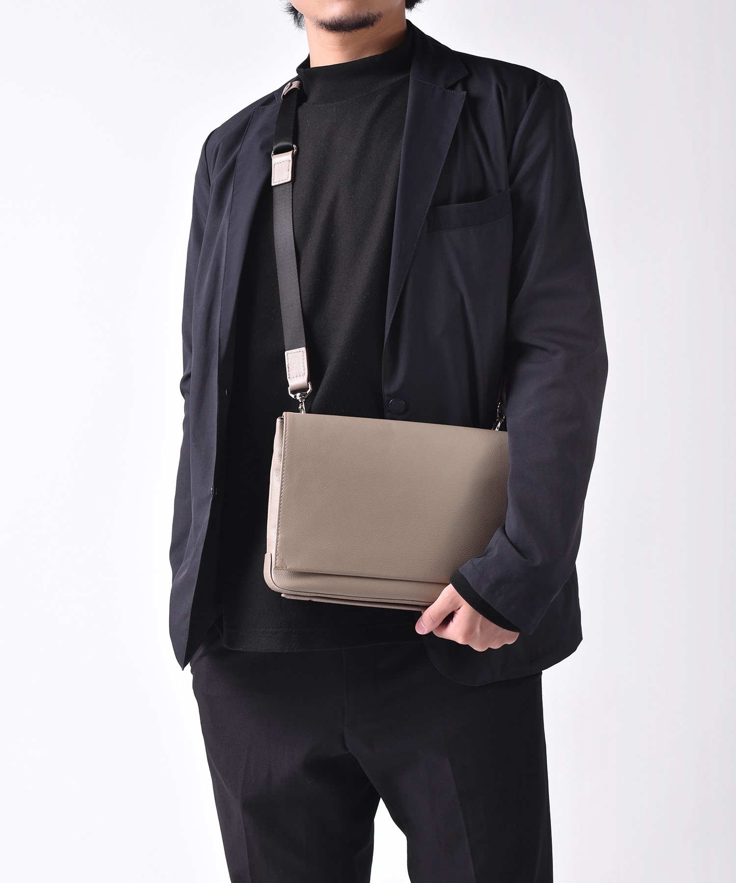 クラッチバッグとしてもショルダーバッグとしてもお使いいただける2WAY仕様になっています。オールレザーでシンプル且つスタイリッシュなデザインになっており、普段使いはもちろん冠婚葬祭にもおすすめです。iPadがぴったり入るサイズ感になっています。
