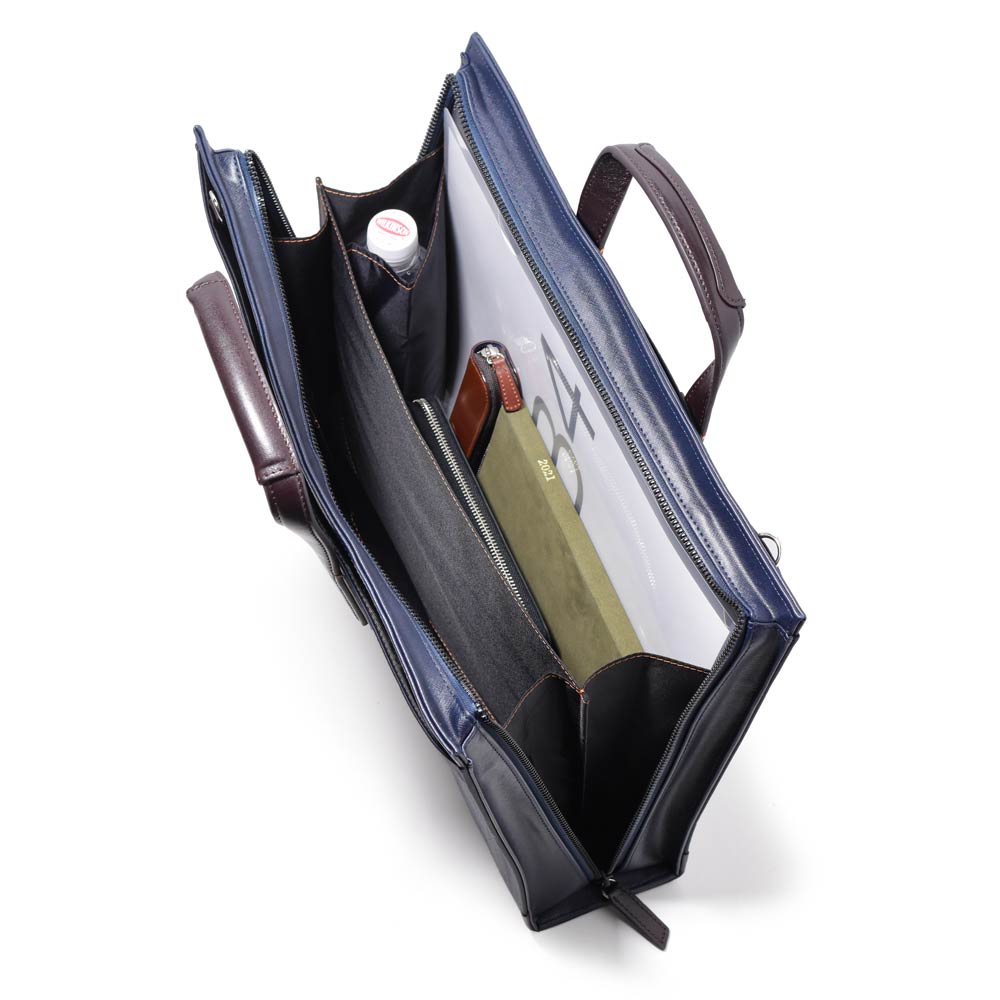 大きく開く三方開き仕様で、中身がみやすく、書類などをスムーズに出し入れできます。