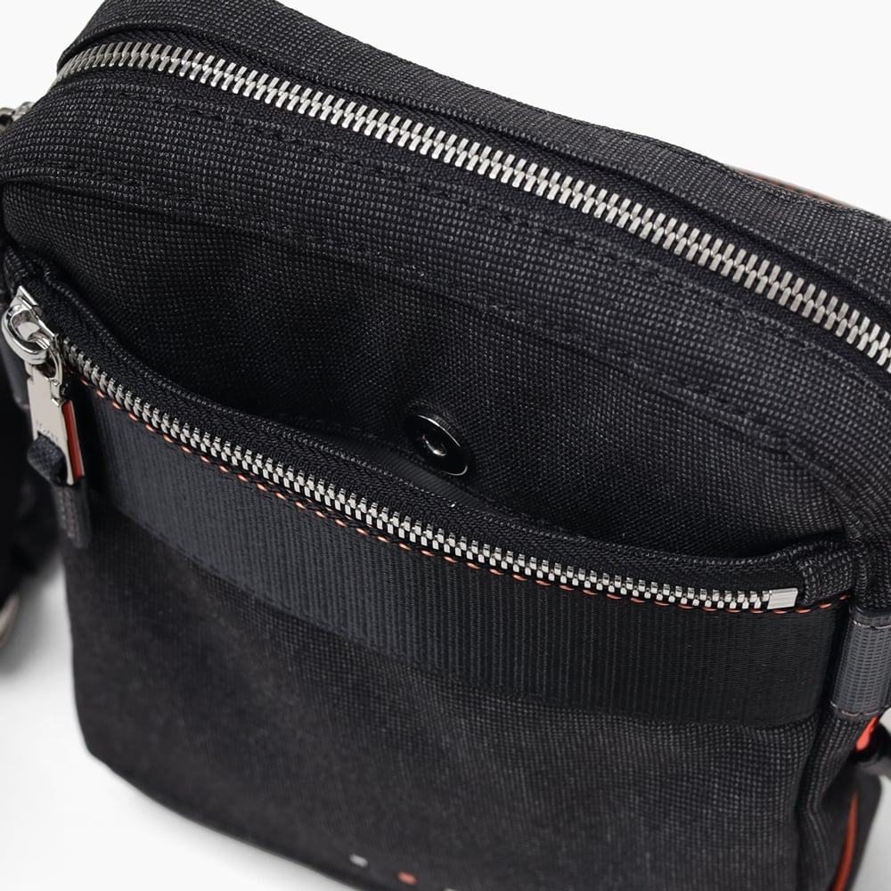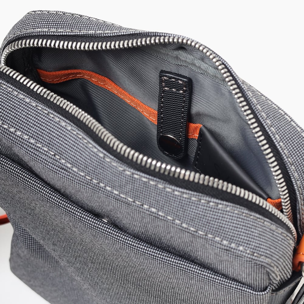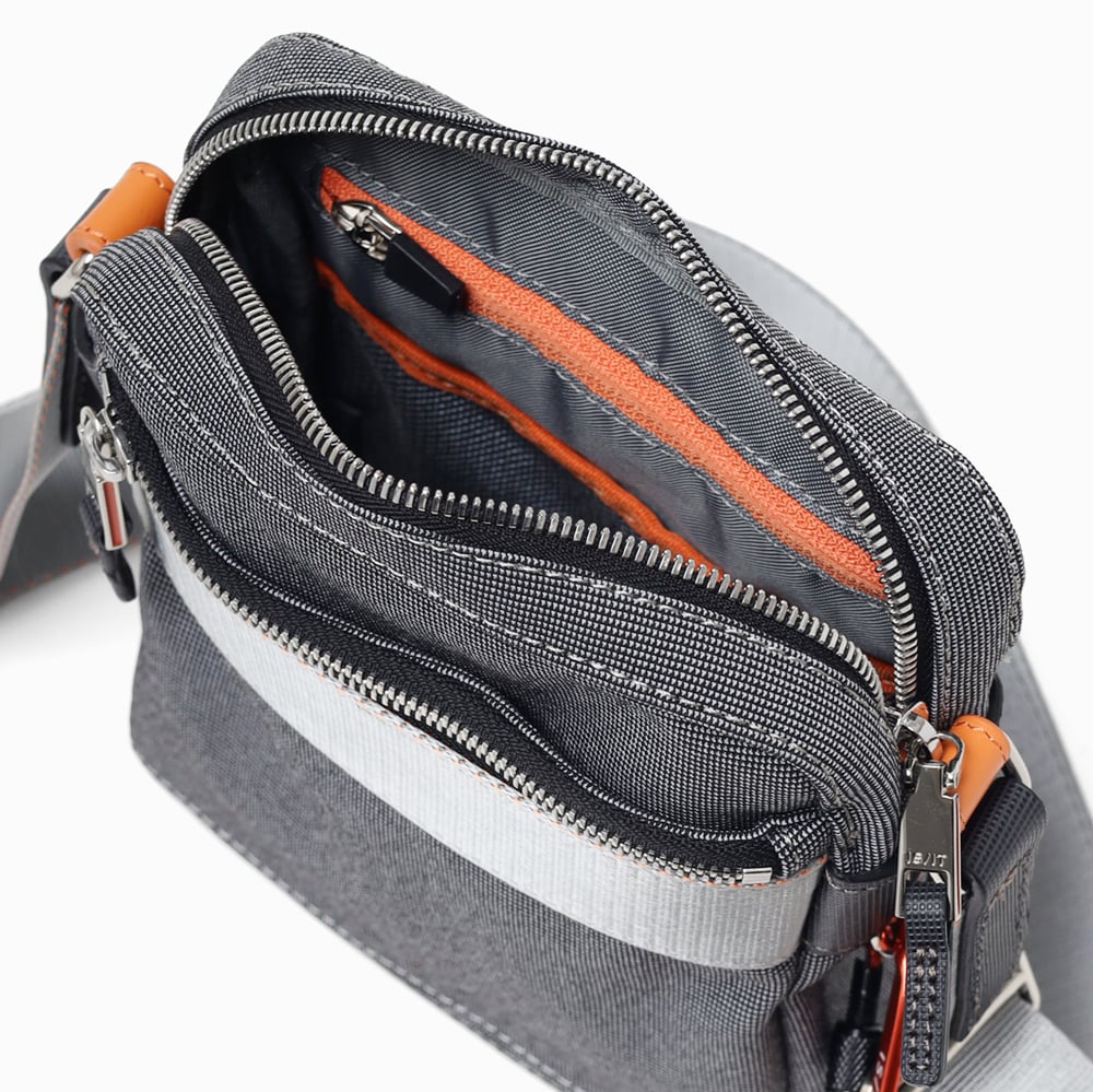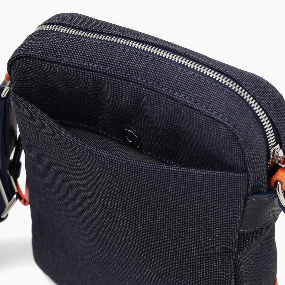 本体素材には、ポリエステルシャンブレー生地を使用。表面強度に優れ、シワになりにくいといった特性を持った生地です。異なる色の糸を織り交ぜて織られる杢調の生地は、単色ではなく霜降りの入った温かみある風合いに仕上がっています。