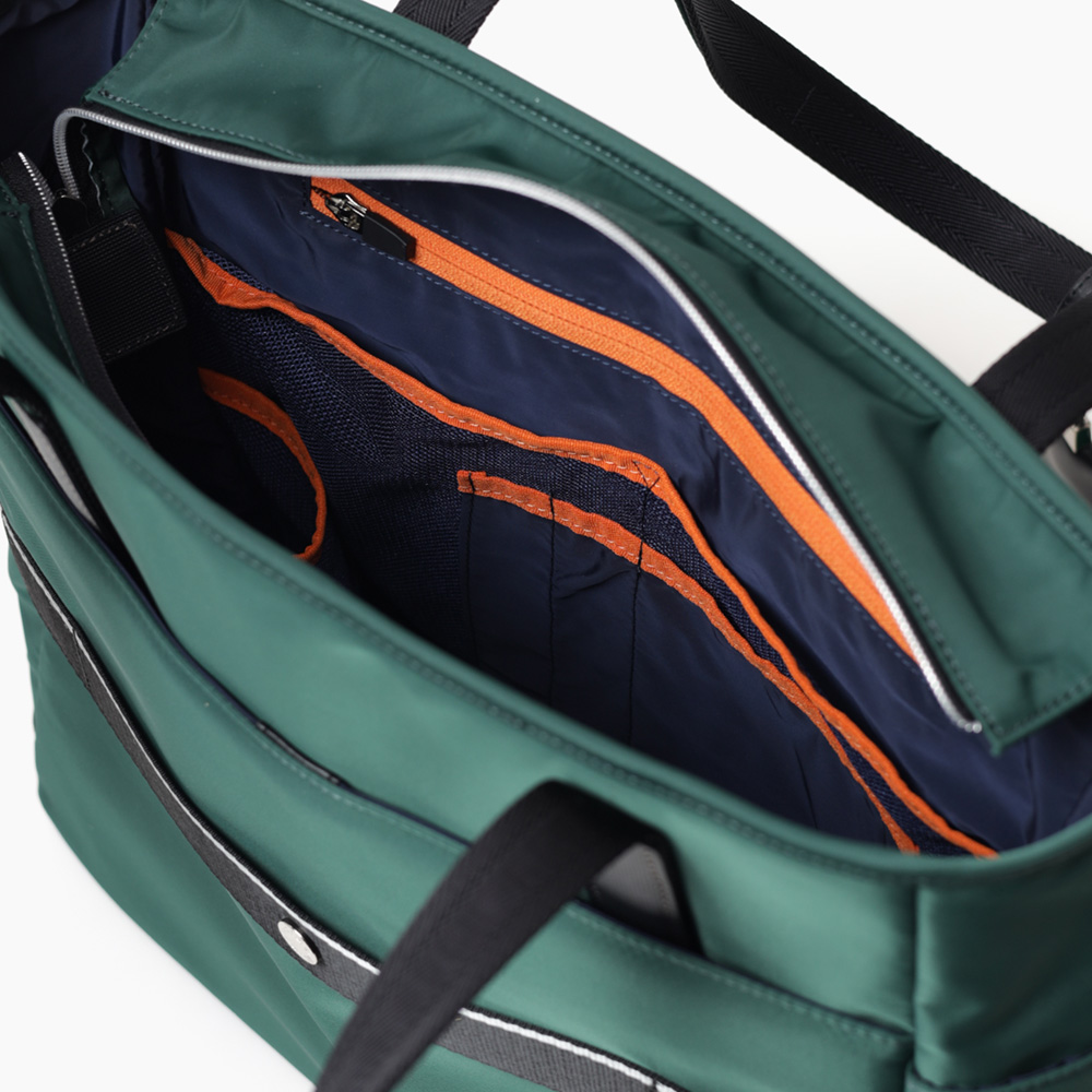 ポケット類が豊富に備わっているので、鞄の中身を整理して収納することができ、物の出し入れがストレスフリーに。また、ポケットにメッシュ素材を採用することで視認性を良くし、どこに何が入っているのかが一目瞭然に。より機能性を高めたつくりになっています。