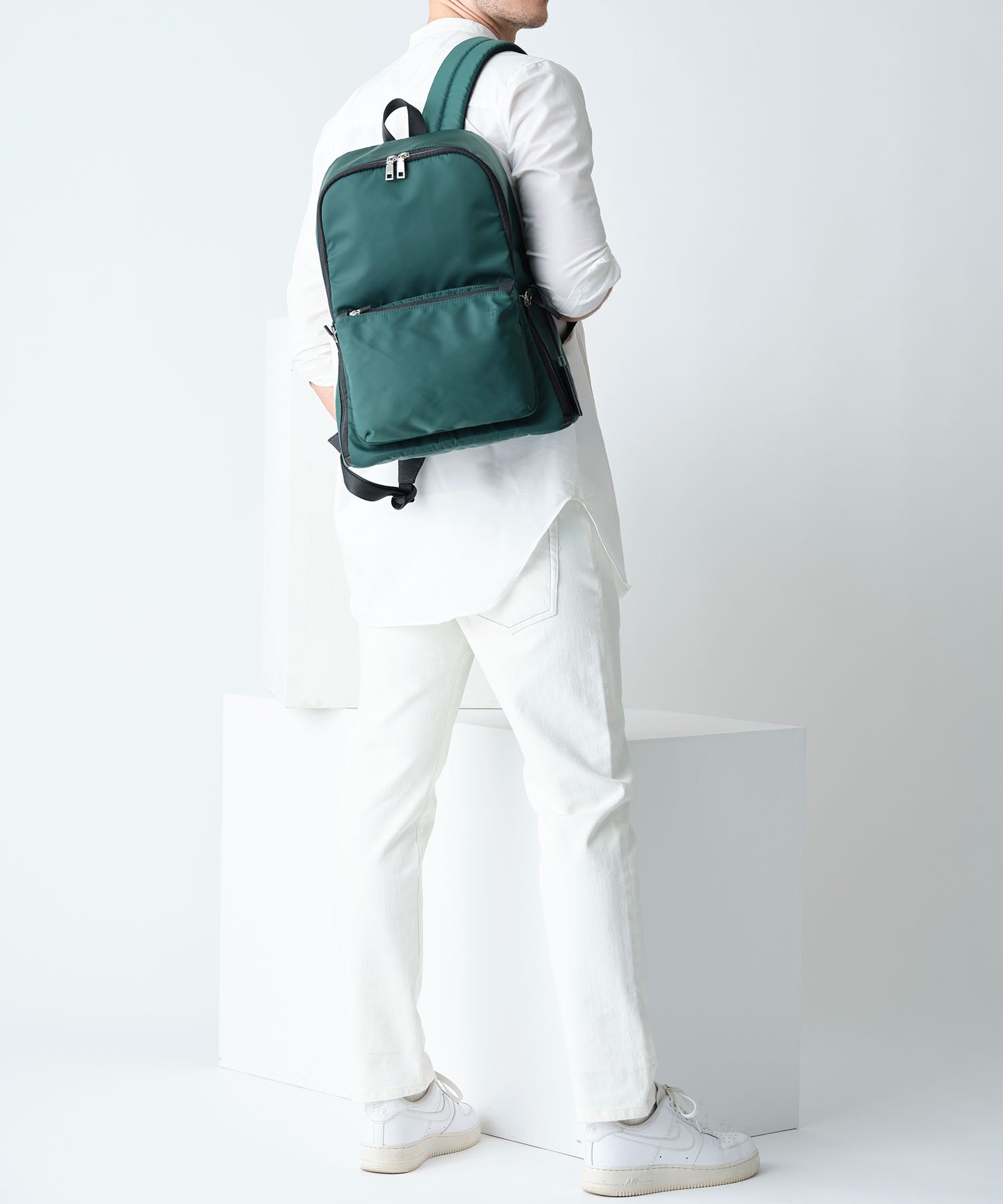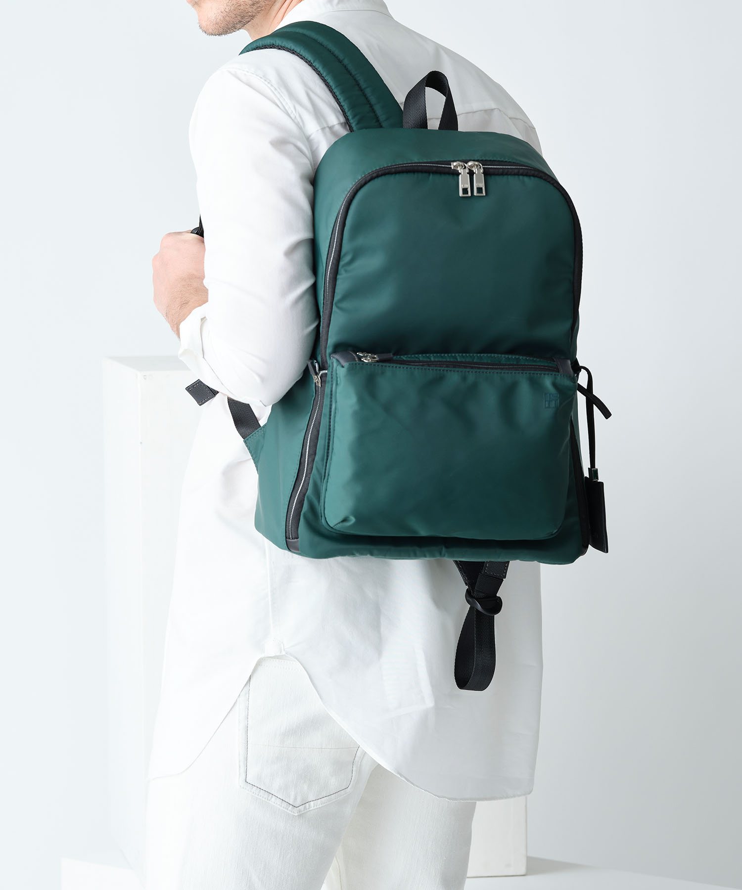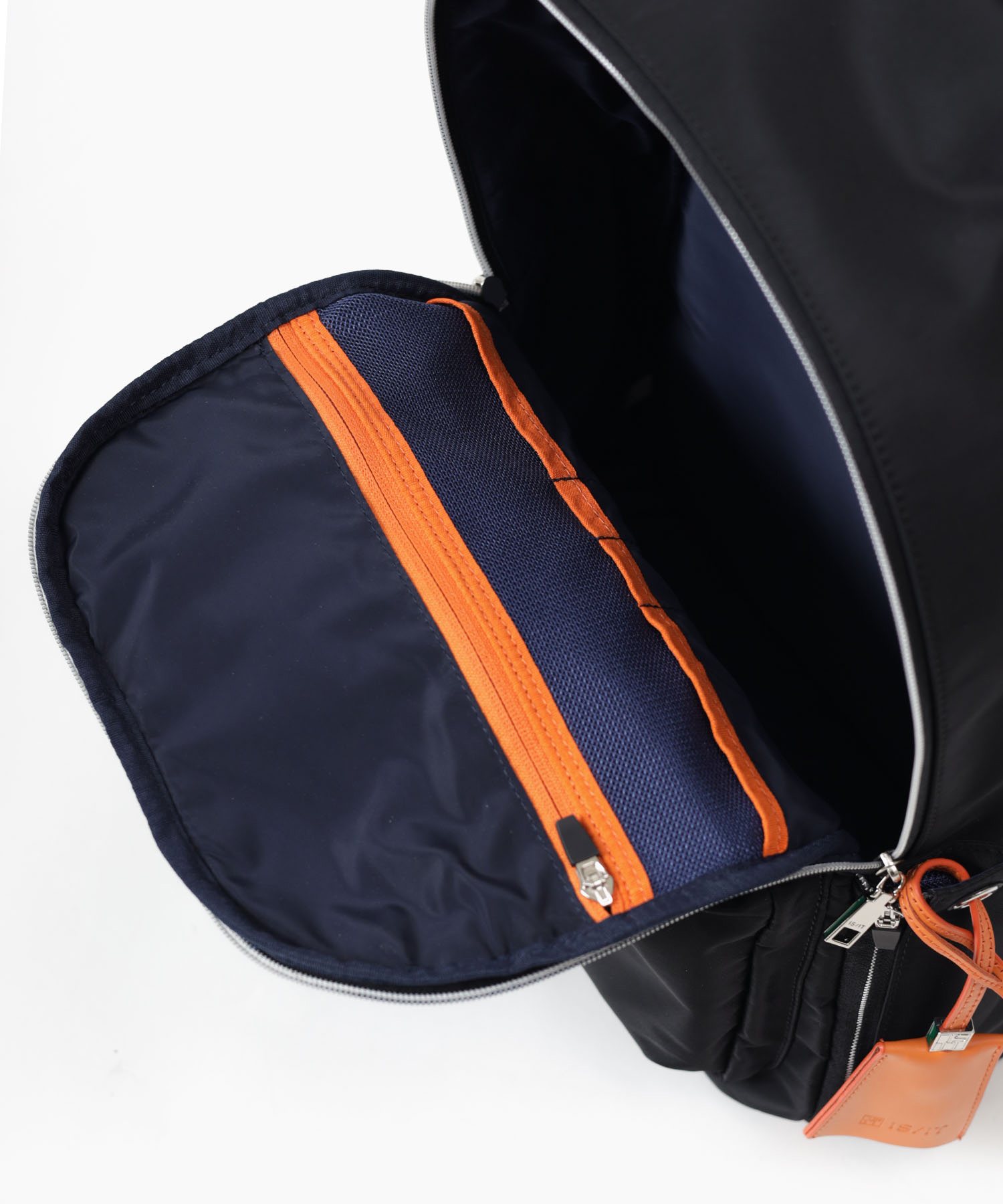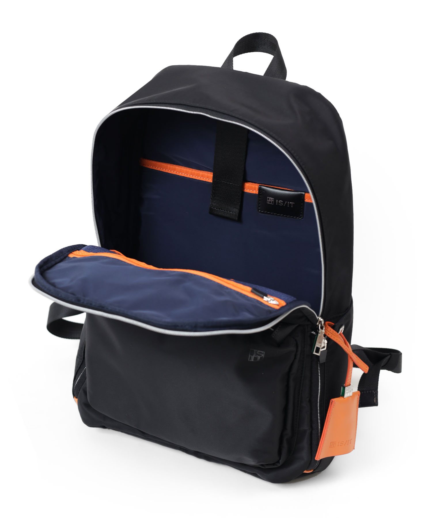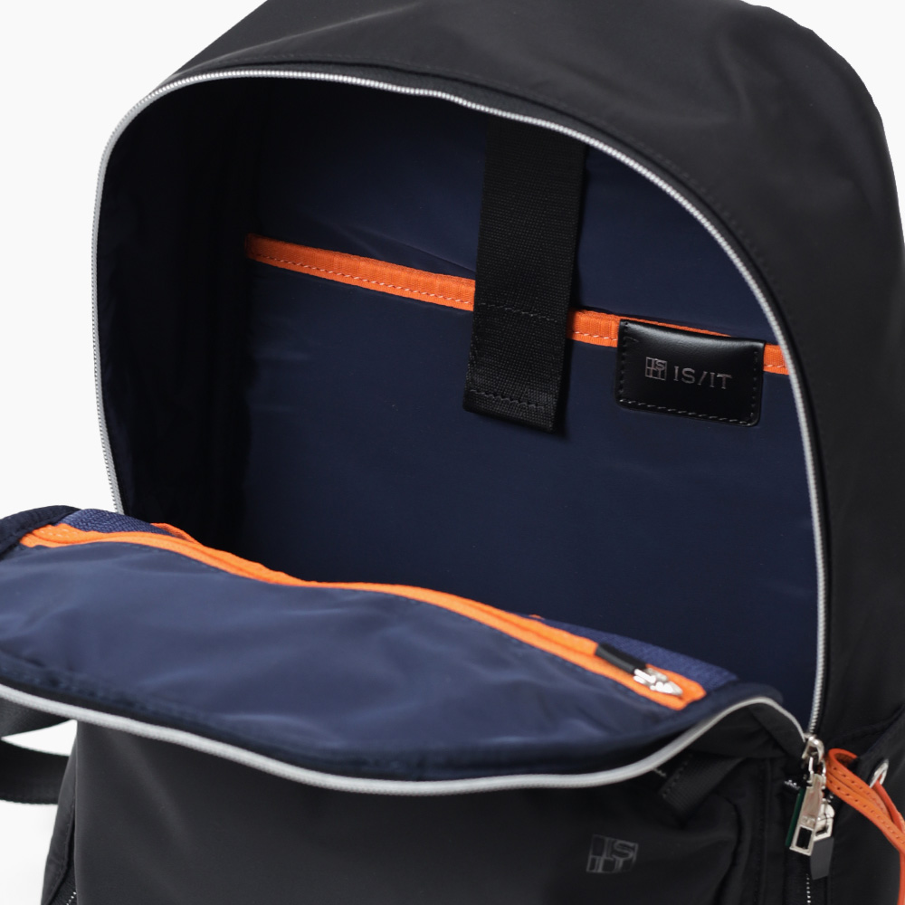 「収納しやすい」を追求し完成した、イズイットのA4サイズのリュック。フロントにある機能的な2層式のポケットがポイント。スマホや財布類など、使用頻度の高いアイテムが収納しやすいようデザインしました。