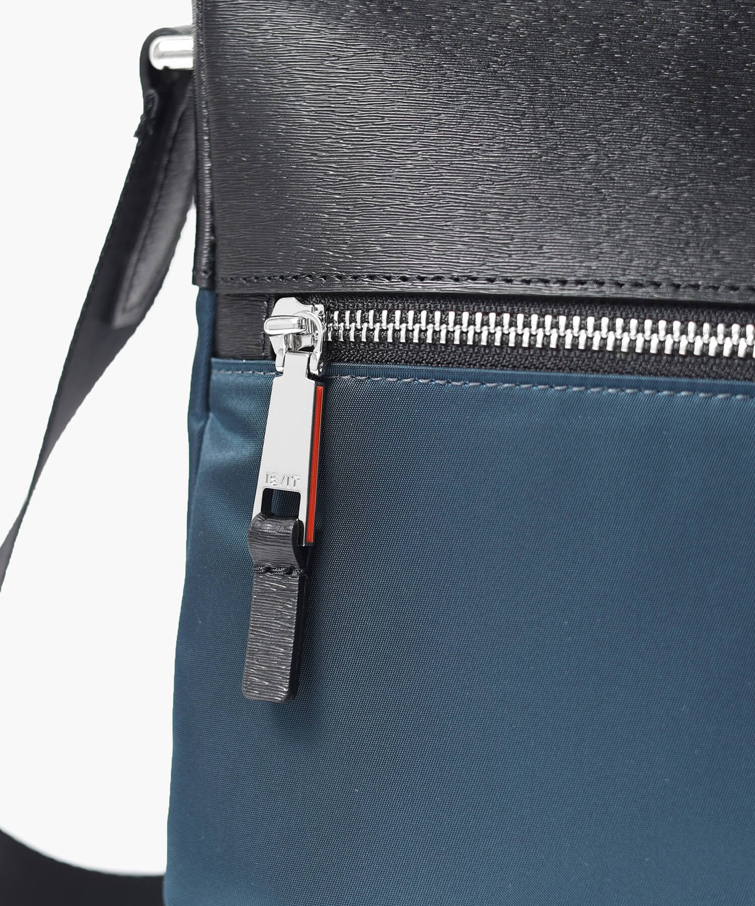 本体素材には、上品な光沢とソフトな風合い、高い耐久性を兼ね備えたナイロン糸「東レミラコスモ」を使用しています。裏面にはPVC加工を施してボリューム感と防水性を高めています。東レミラコスモナイロン糸は世界最細クラスで、肌触りが非常に滑らかで、陰影のある上品な光沢が特徴です。また、付属には傷が目立たず取り扱いに優れたエンボスレザーを使用しています。また、ミニマルなアーチ状金具やオリジナル引手などのメタルパーツが、ISITらしいモダンなテイストを加えています。