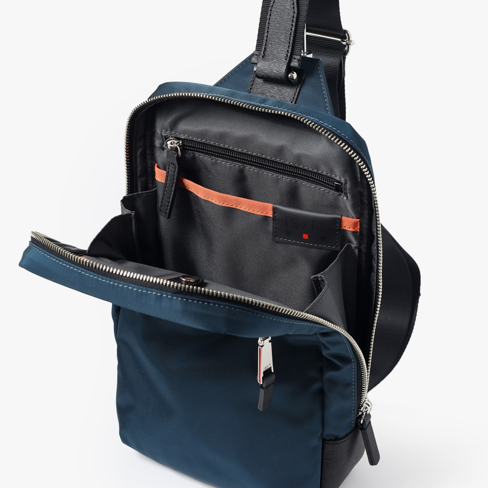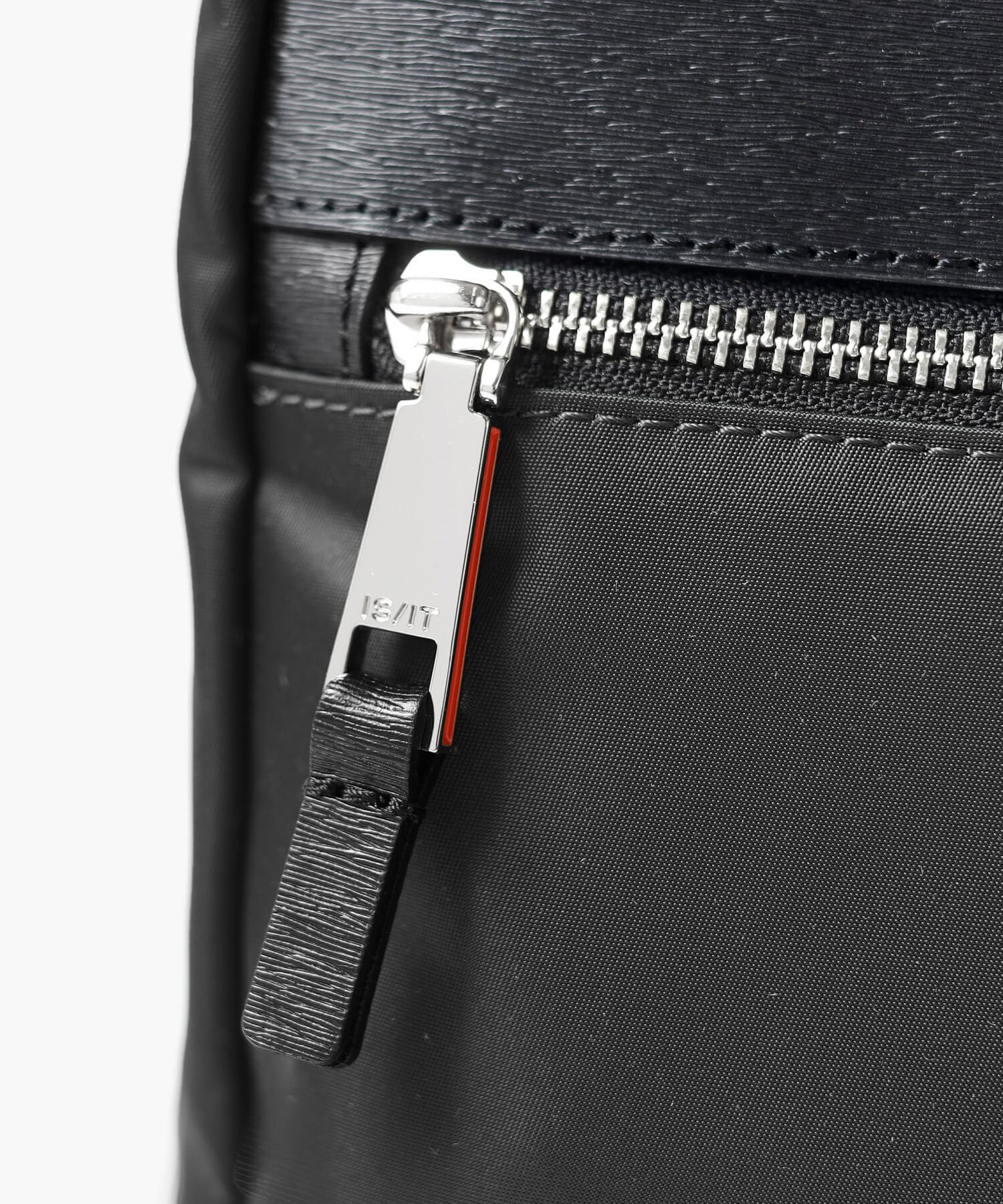 本体素材には、上品な光沢とソフトな風合い、高い耐久性を兼ね備えたナイロン糸「東レミラコスモ」を使用しています。裏面にはPVC加工を施してボリューム感と防水性を高めています。東レミラコスモナイロン糸は世界最細クラスで、肌触りが非常に滑らかで、陰影のある上品な光沢が特徴です。また、付属には傷が目立たず取り扱いに優れたエンボスレザーを使用しています。また、ミニマルなアーチ状金具やオリジナル引手などのメタルパーツが、ISITらしいモダンなテイストを加えています。