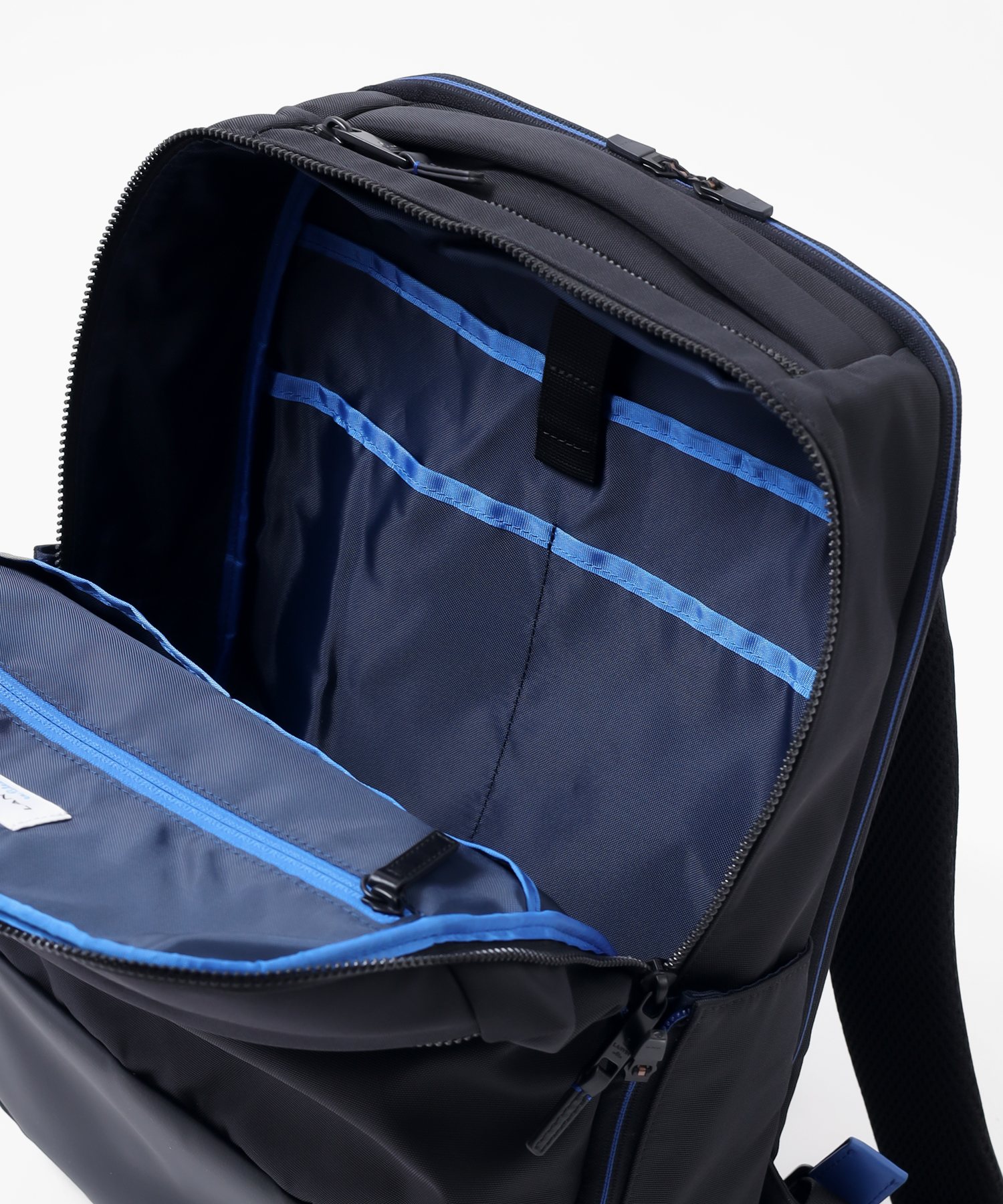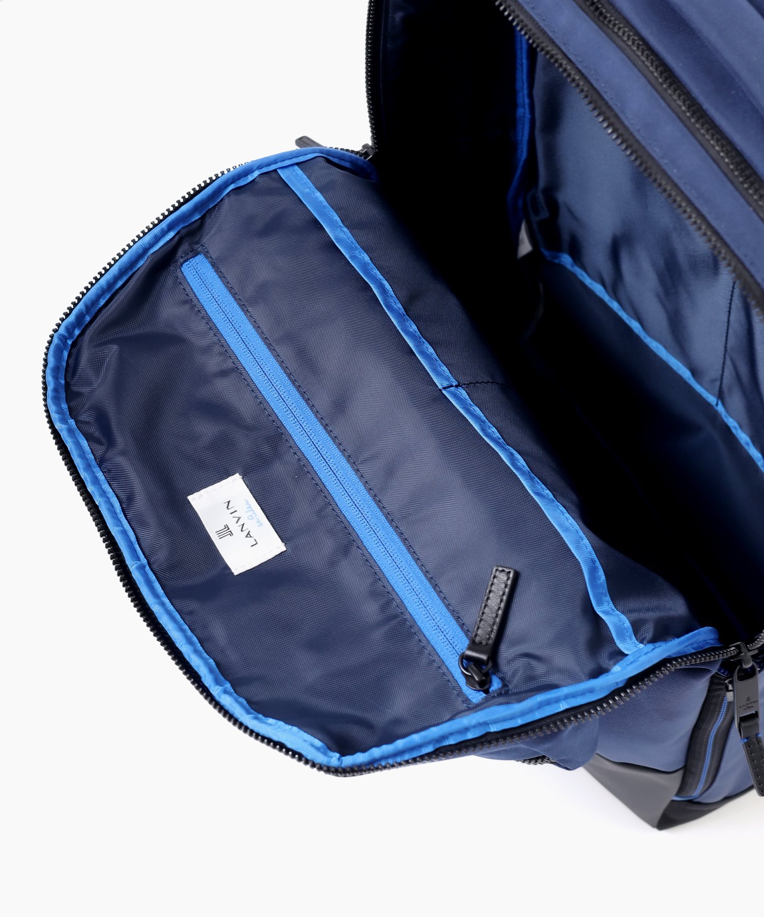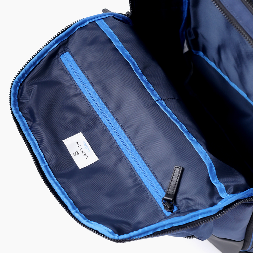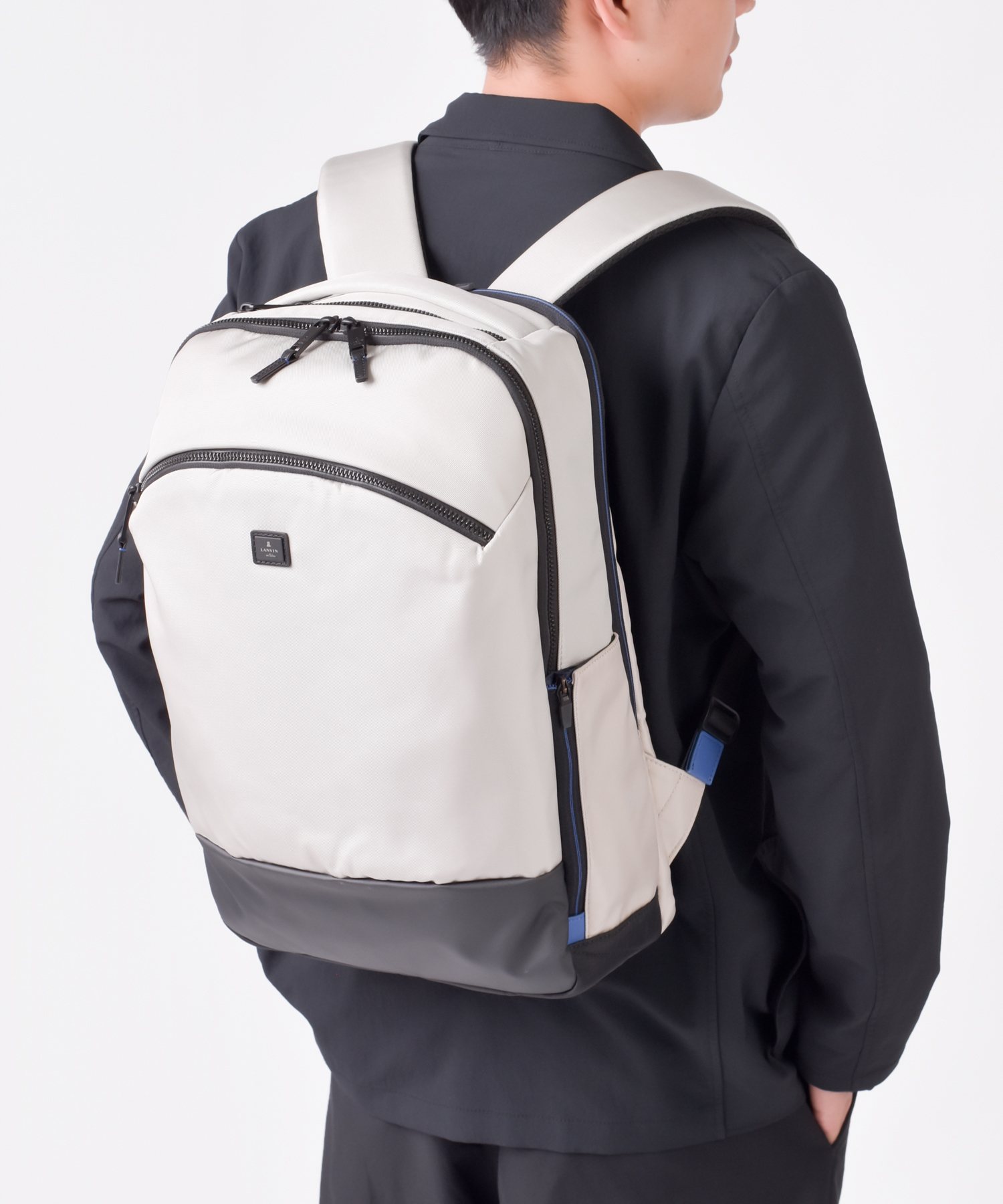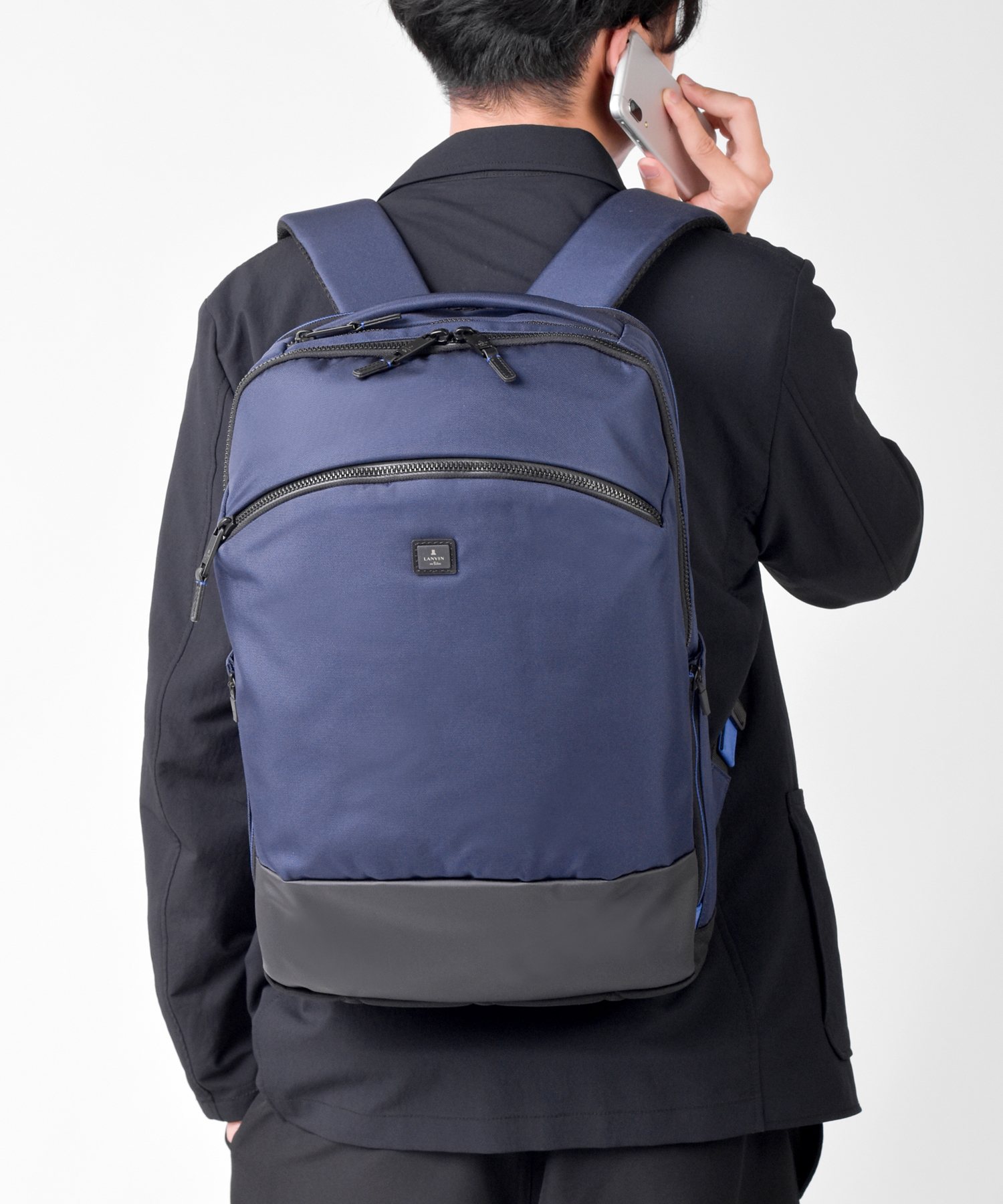 立体的なシルエットを作り出す裁断ながらもビジネスシーンでも使いやすいよう、収納ポケット類を豊富にすることで機能面にもこだわった、ランバンオンブルーのB4サイズのリュックです。