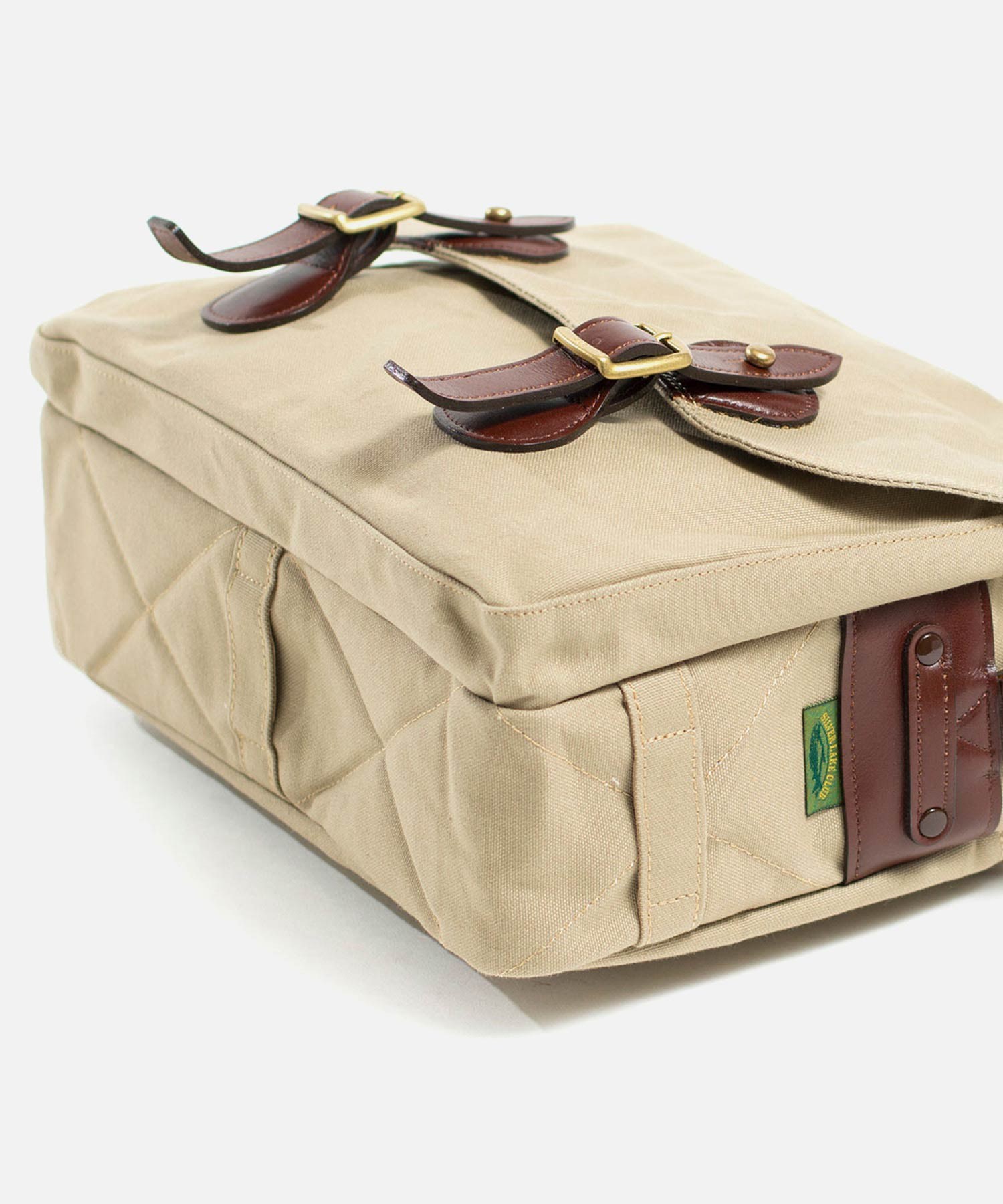 美錠にはオリジナルのアンティーク調の金具を使用しており、SLCのロゴがさりげなく刻印されています。金具の色、革の色、帆布の色と、全体の色のバランスをじっくり吟味して作られたものとなっています。