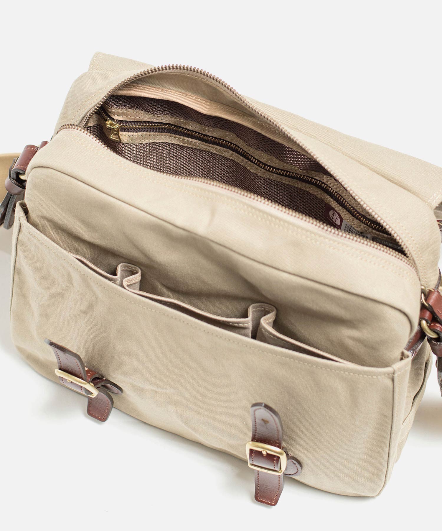 シルバーレイククラブの定番シリーズ、9号帆布のショルダーバッグ。マチ幅9cmでたっぷり収納可能。B5サイズの書類も余裕で入ります。財布に手帳、文庫本、ペットボトルも楽々入る収納力で、お出かけにぴったりです。メッシュポケットは中に何が入っているか一目で分かり、大変便利です。