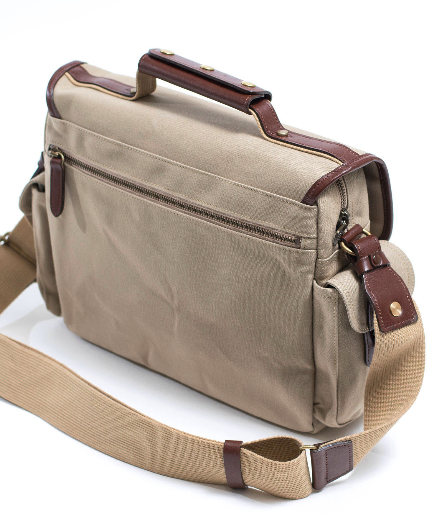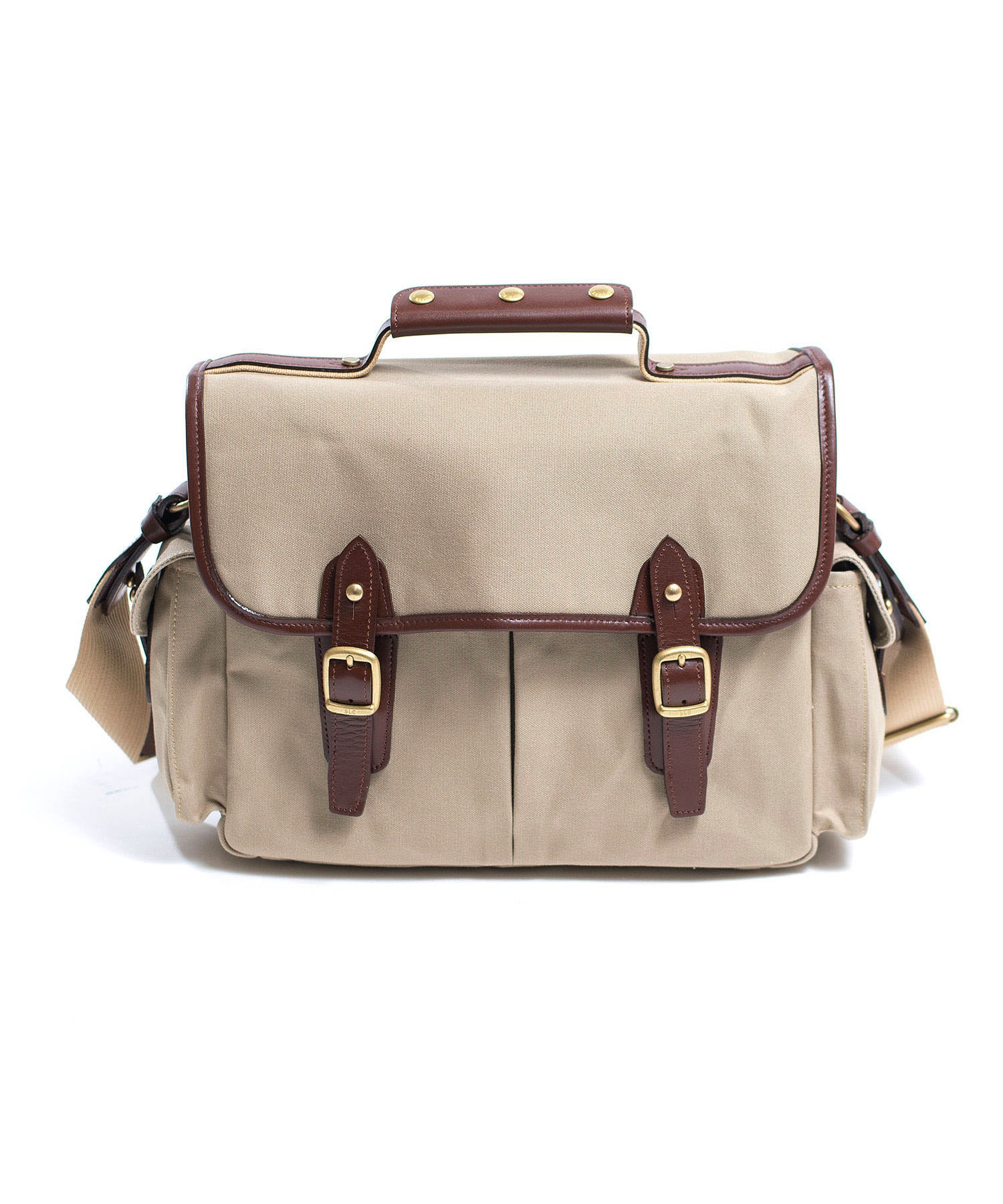 美錠にはオリジナルのアンティーク調の金具を使用しており、SLCのロゴがさりげなく刻印されています。金具の色、革の色、帆布の色と、全体の色のバランスをじっくり吟味して作られたものとなっています。