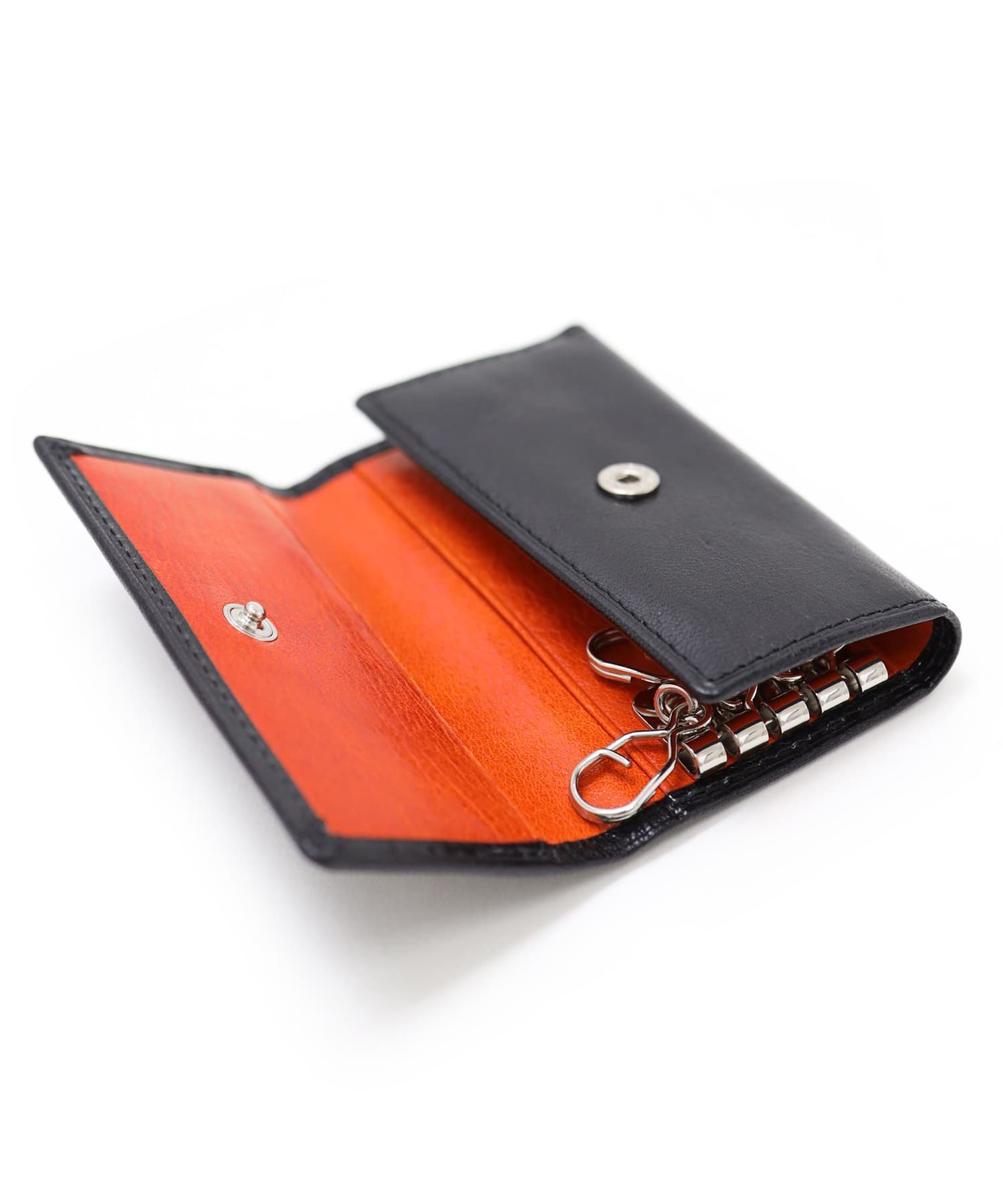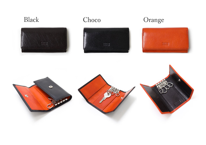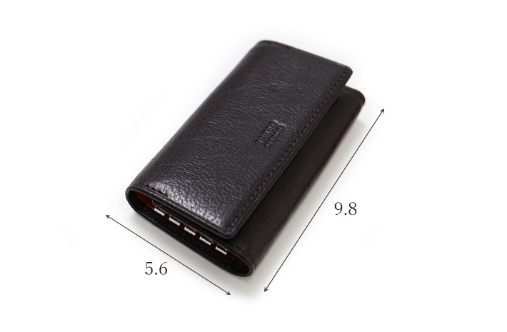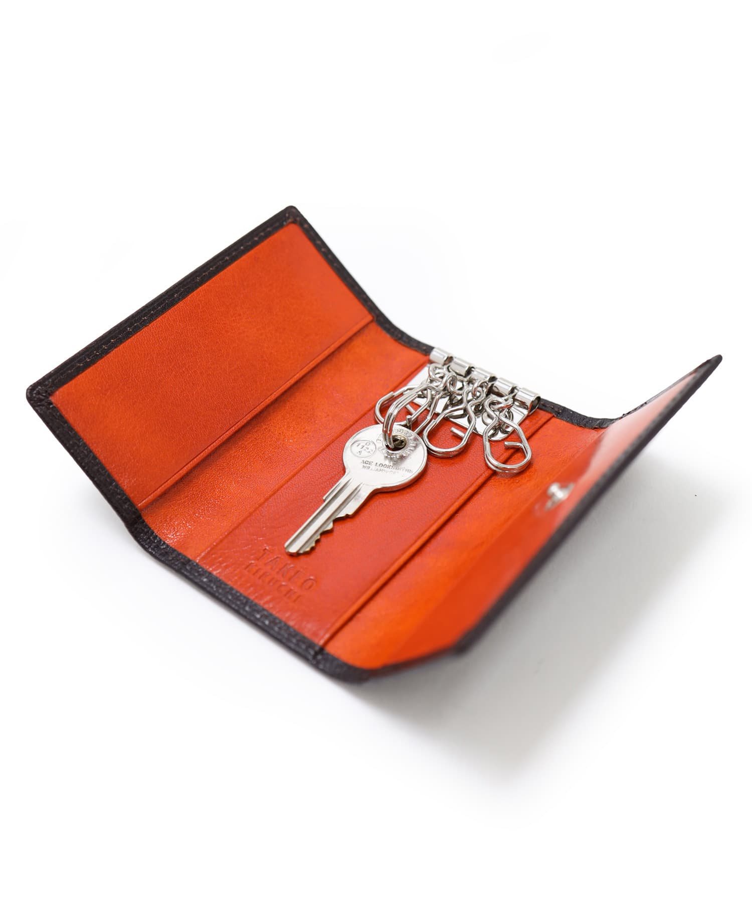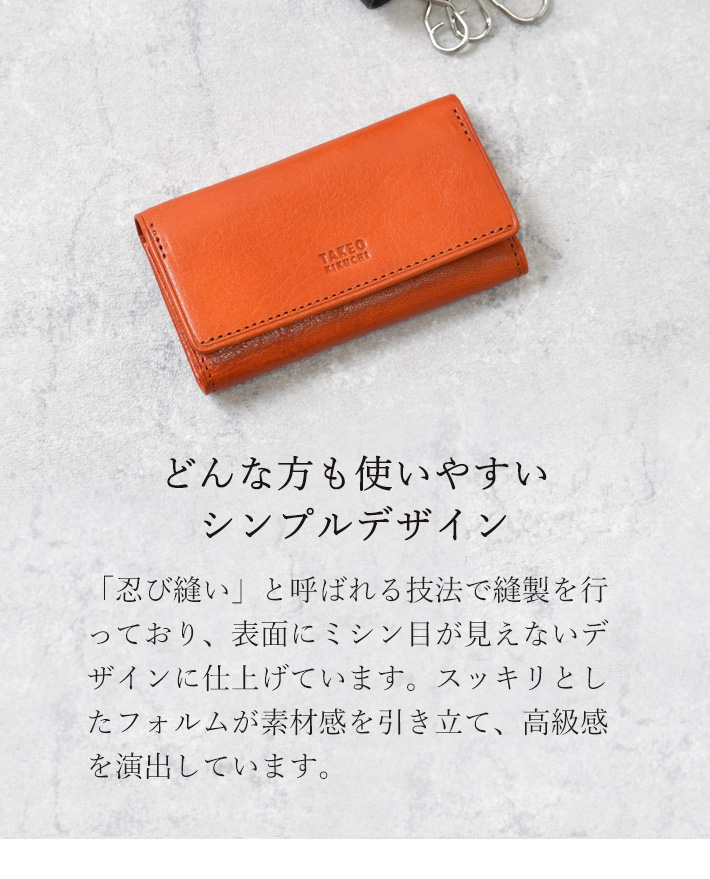 十分にオイルを染み込ませた牛革を本体素材に使用したタケオキクチのアルド小物シリーズのキーケース。握ると「ギュッ」と革が鳴き、革らしい風合いをお楽しみいただけます。