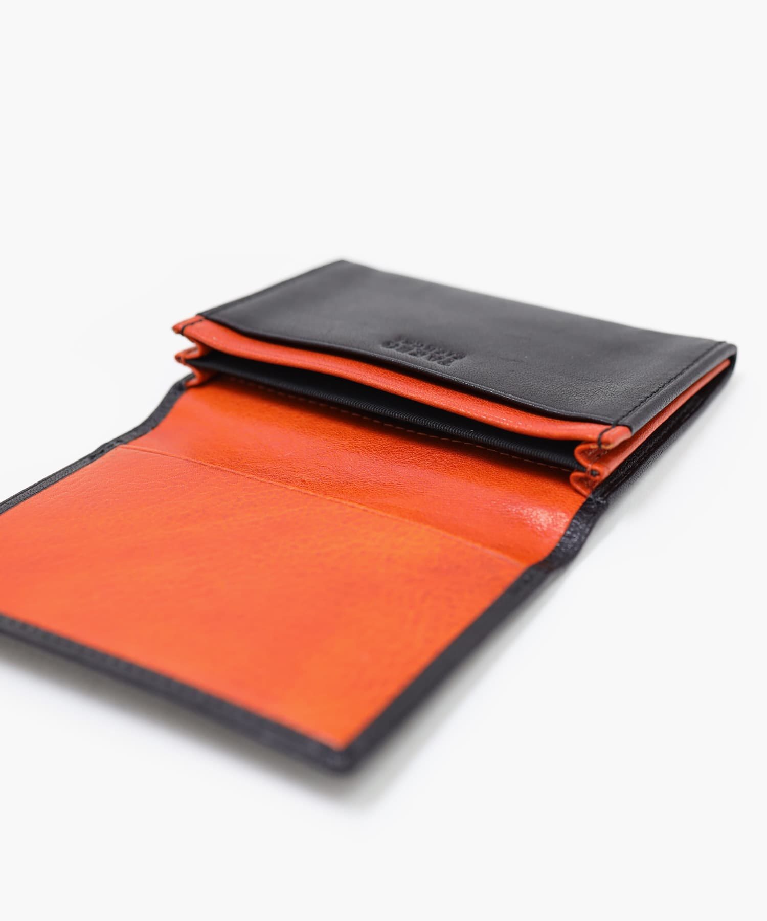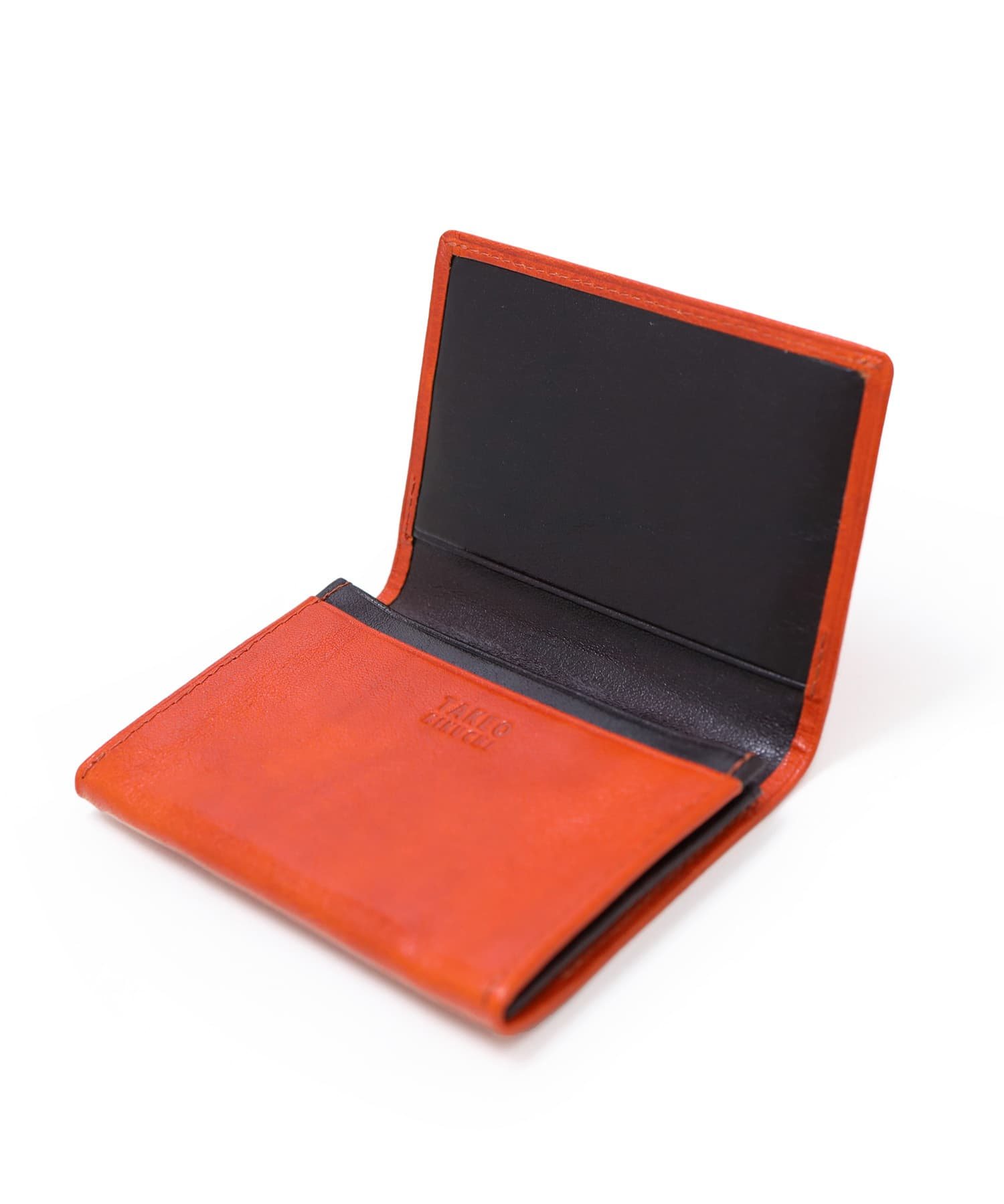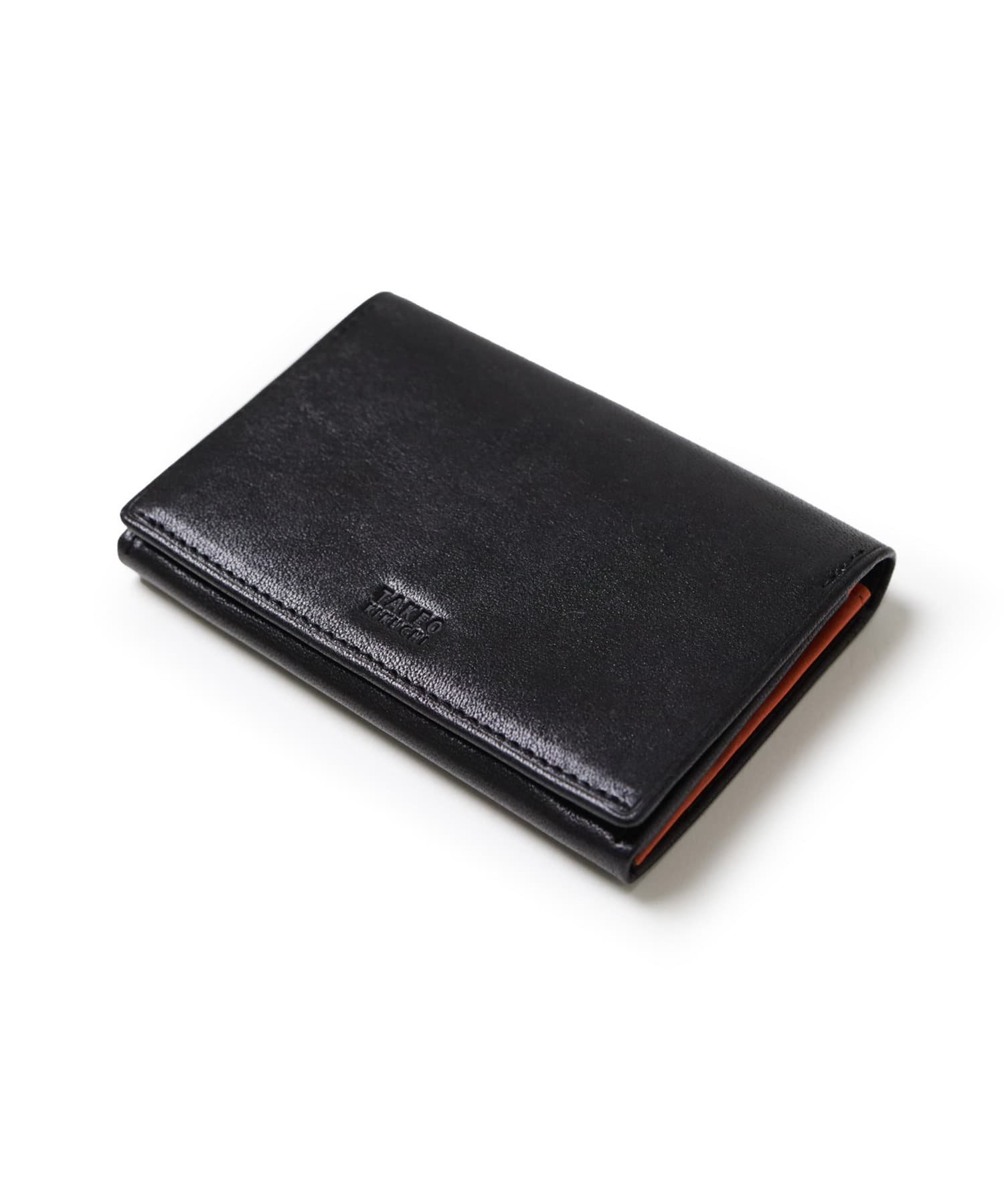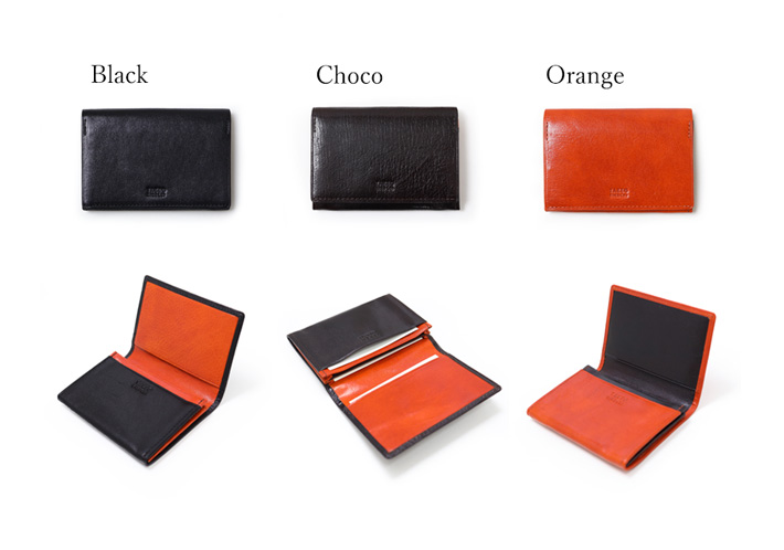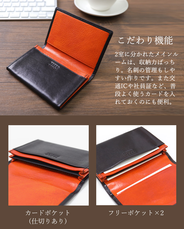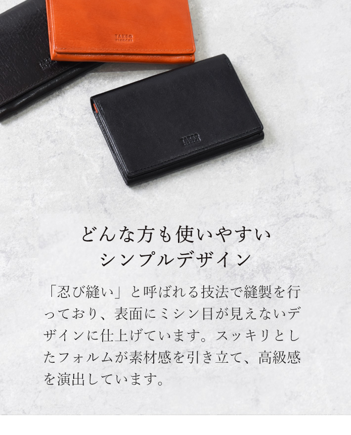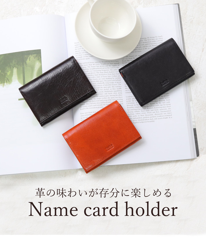 十分にオイルを染み込ませた牛革を本体素材に使用したタケオキクチのアルド小物シリーズの名刺入れ。握ると「ギュッ」と革が鳴き、革らしい風合いをお楽しみいただけます。