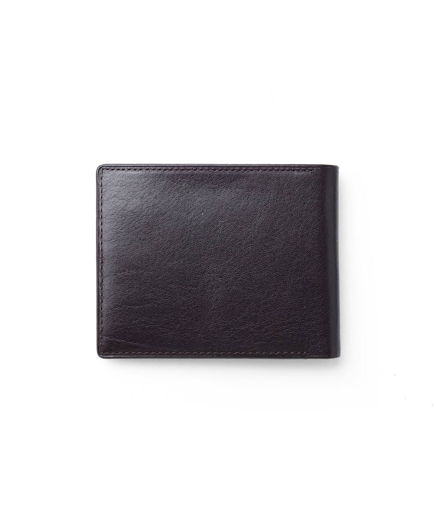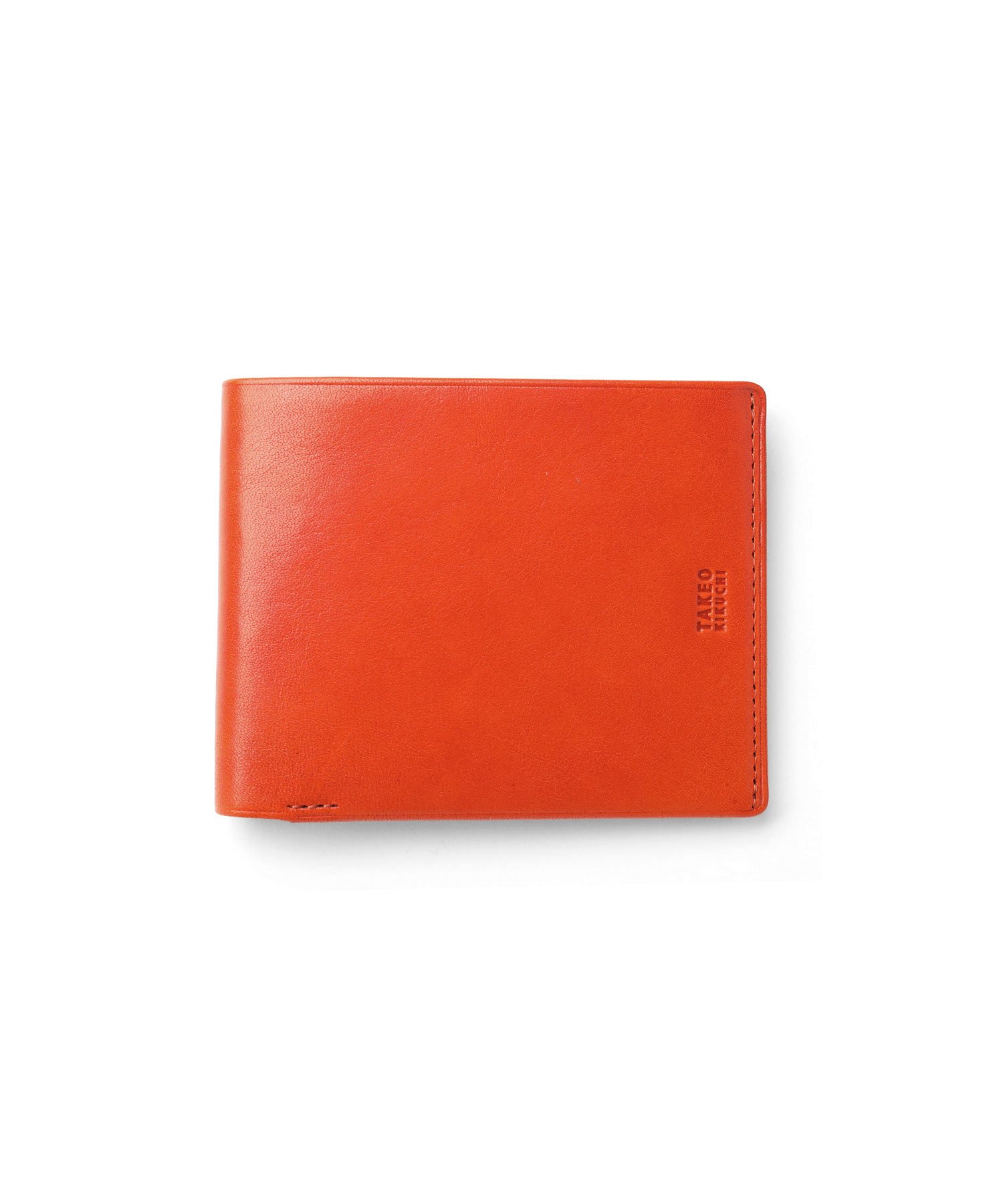 タケオキクチの小銭入れ無しの純札タイプの二つ折り財布です。小銭入れがない分、スマートで薄造りなフォルムとなっています。