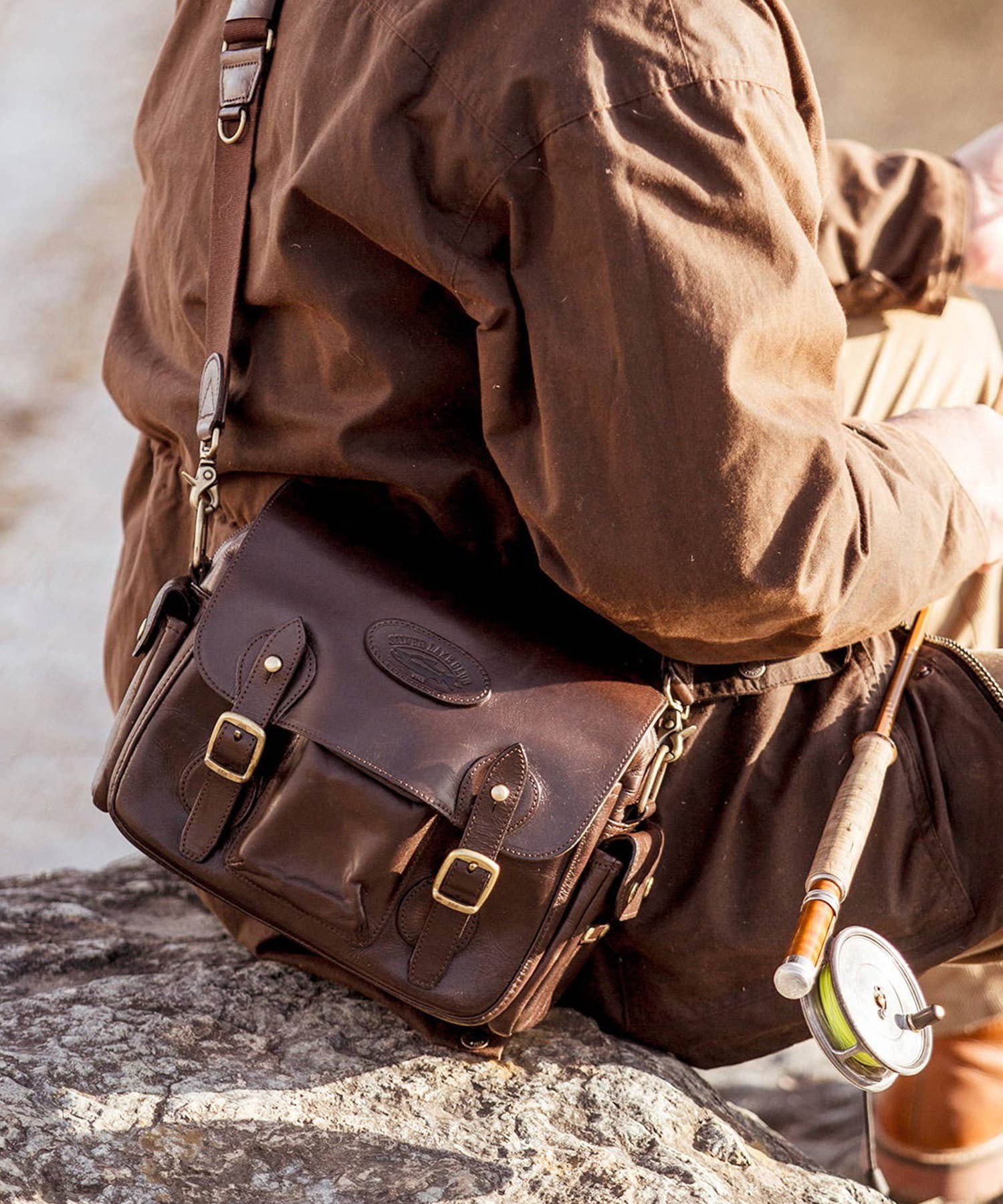 シルバーレイククラブのレザーショルダーバッグ。"M・Y(エム・ワイ)バッグ"とは、フライフィッシング歴40年の村越精工の"村越氏"とつるや釣具店の"山城氏"によって、フィッシングのために開発された鞄です。2人のイニシャルを合わせ"MYバッグ"と呼ばれるこのシリーズは、より洗練されたデザイン、機能性ある鞄へと進化しました。