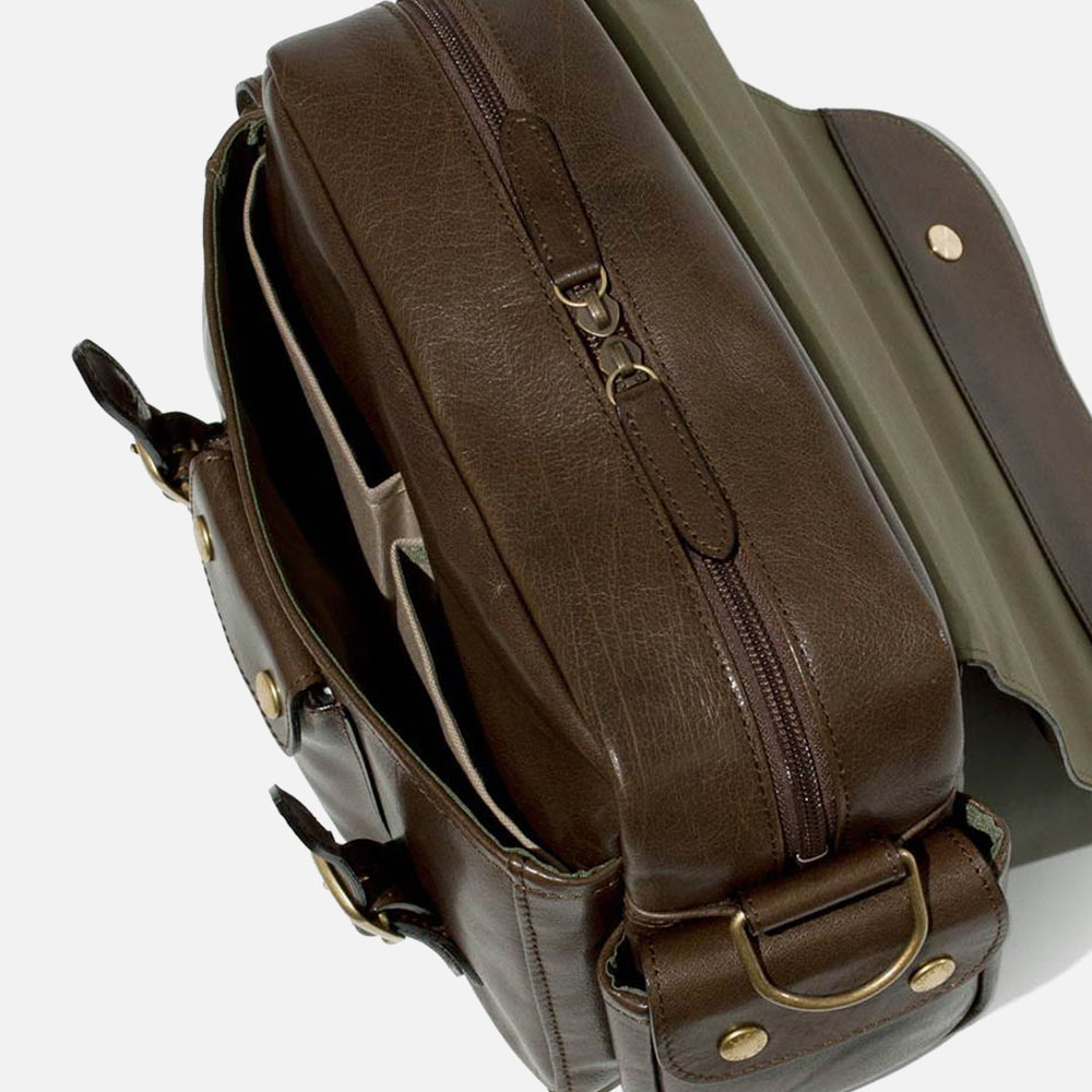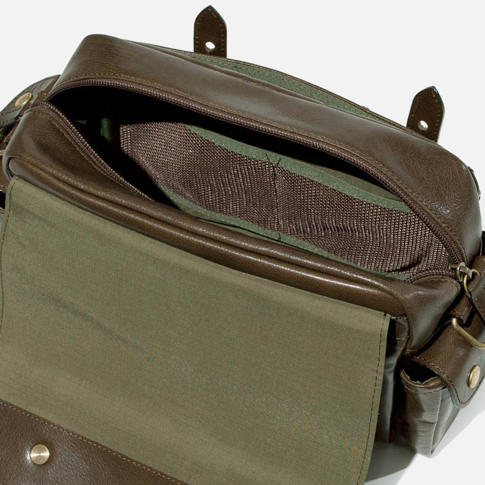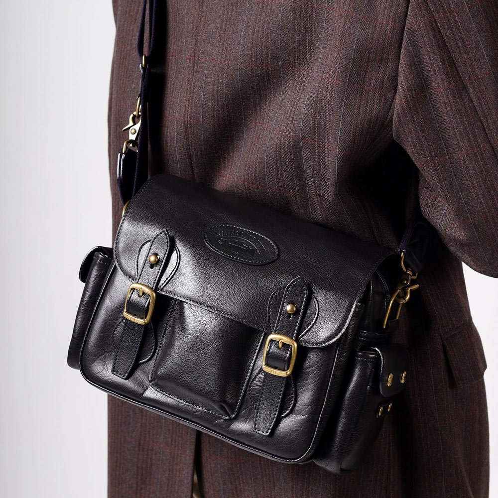 本来のブランドコンセプト、フライフィッシングのために開発された型をそのままに、本体をしなやかでハリを持つべビーバッファロー革で仕上げました。ベビーバッファロー革の独特なシボ感と美しい艶は、使い込むほどに味が増し、あなただけの鞄へと変化していきます。