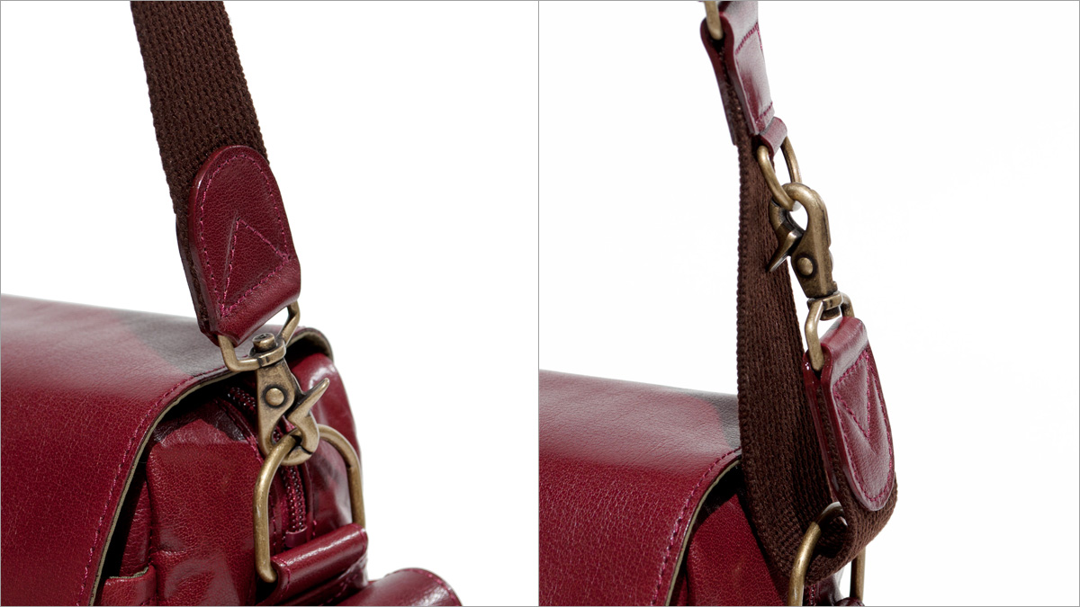 ラフに持ちたいときは直接本体の金具に。安定させて持ちたい時はベルトを折り返して、金具に接続することにより、"辺"で鞄を支える設計になっています。