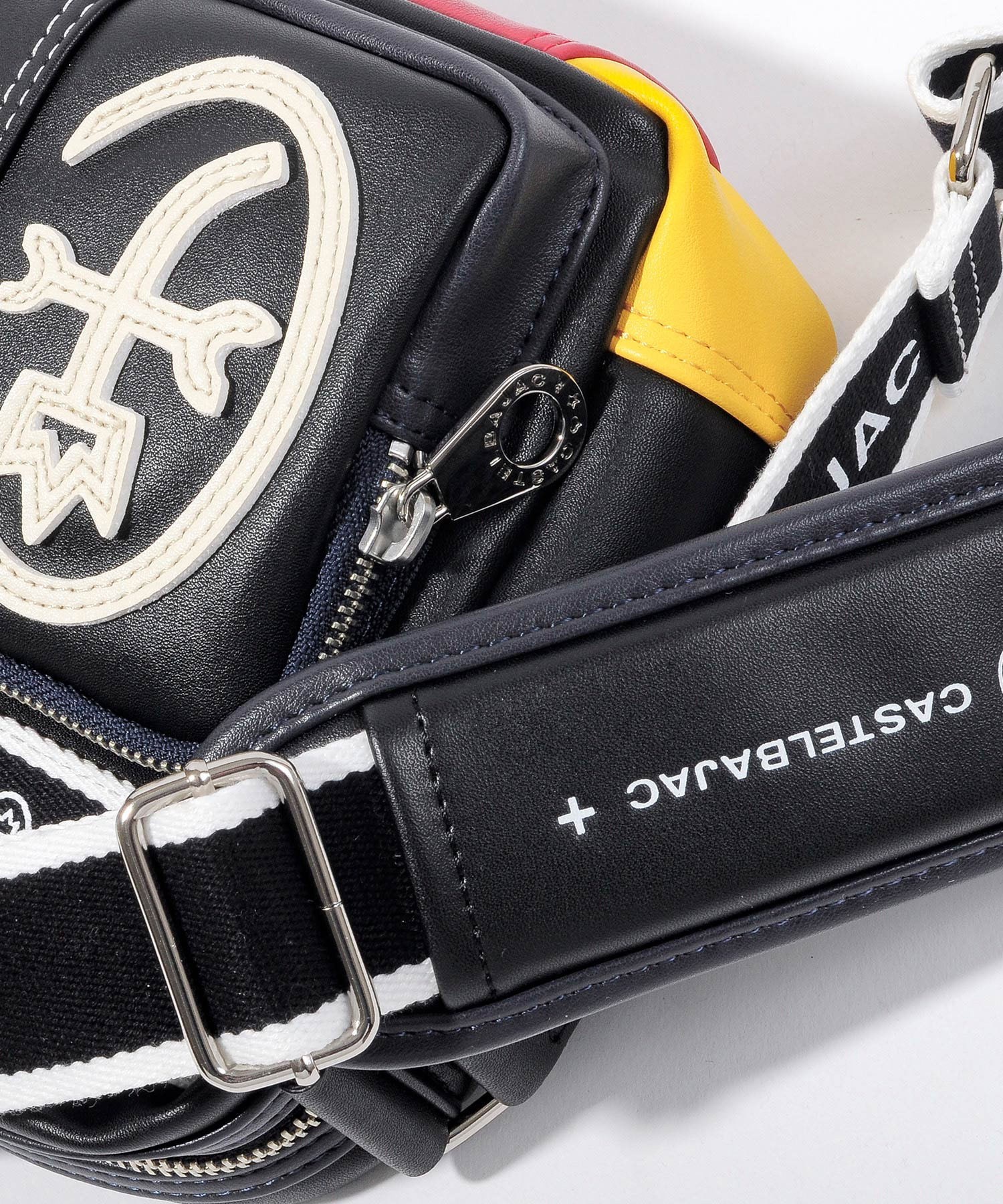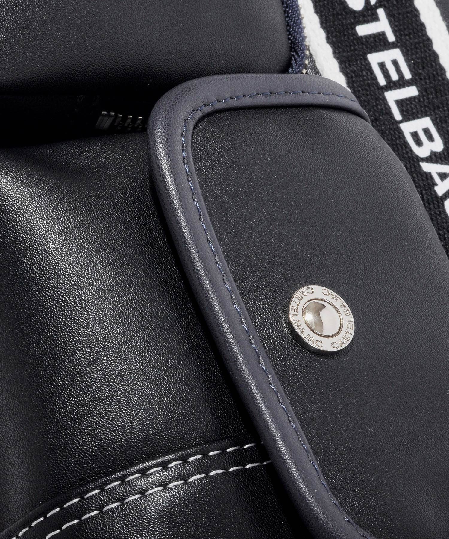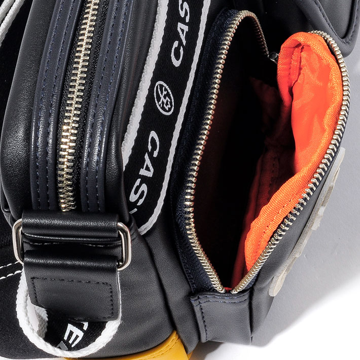 カステルバジャックオリジナルのショルダーテープは、ロゴがあえて内側になるように取り付けてあり、本体でのロゴ表現とは逆にシンプルに仕上げられています。
