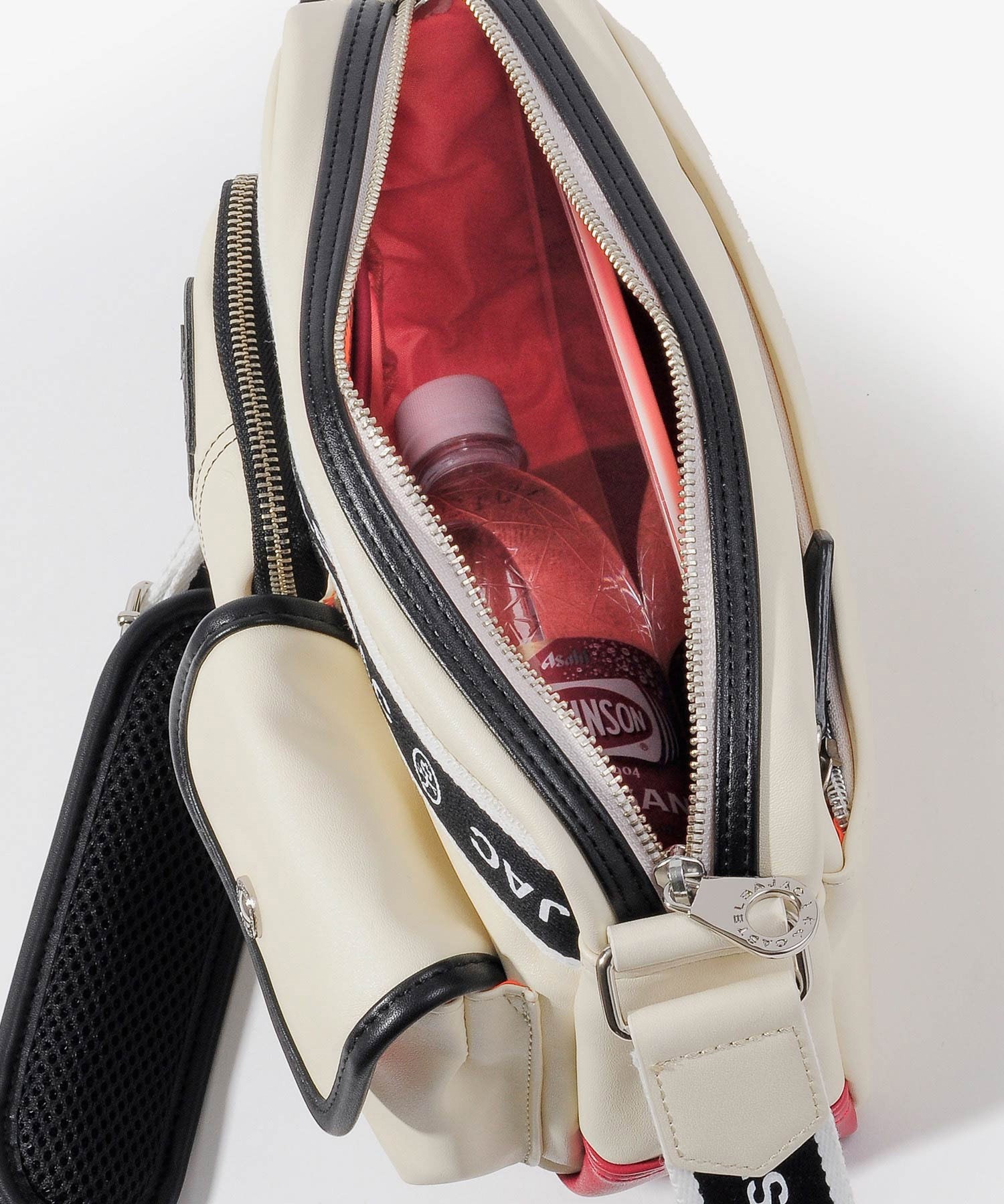 ショルダーバッグの底面はカラフルな原色でデザインされています。