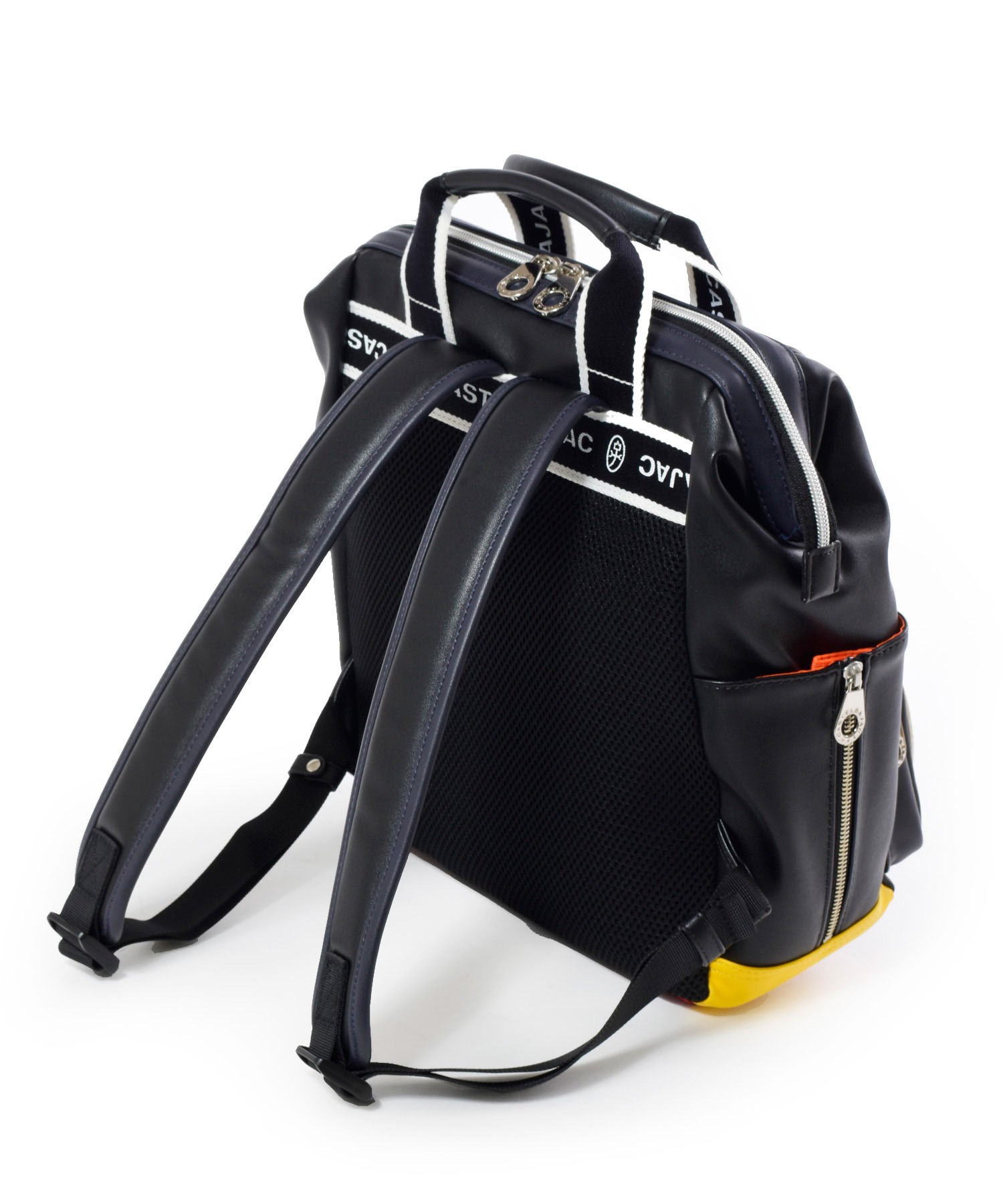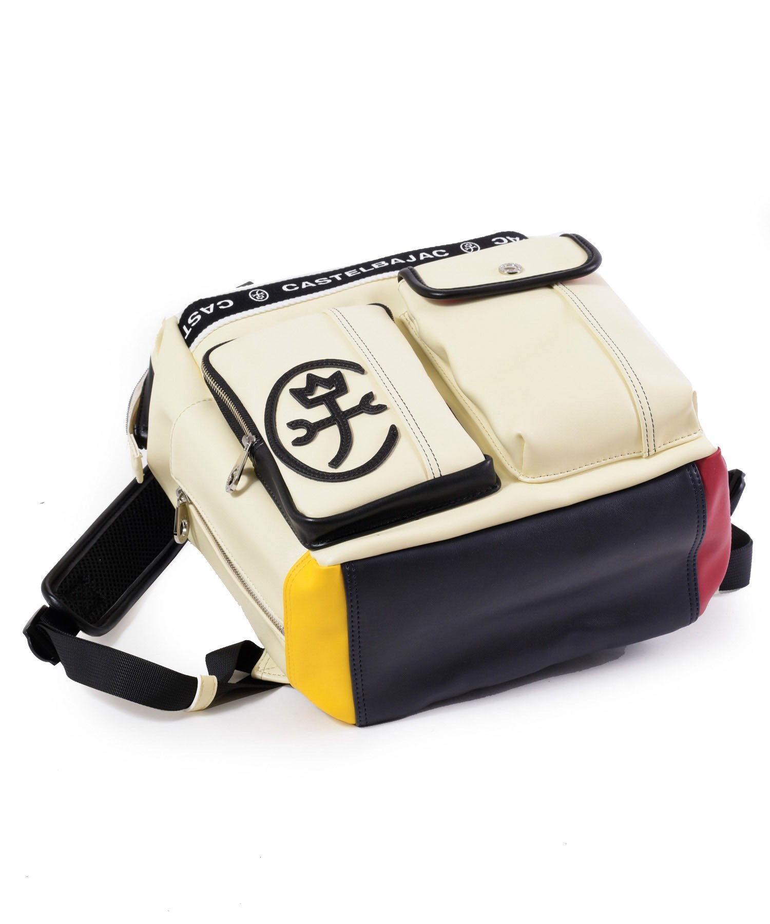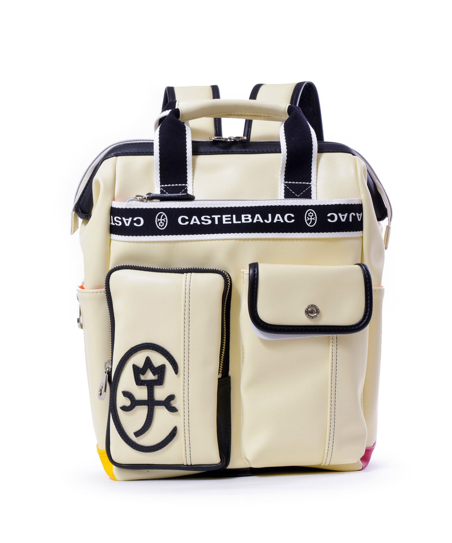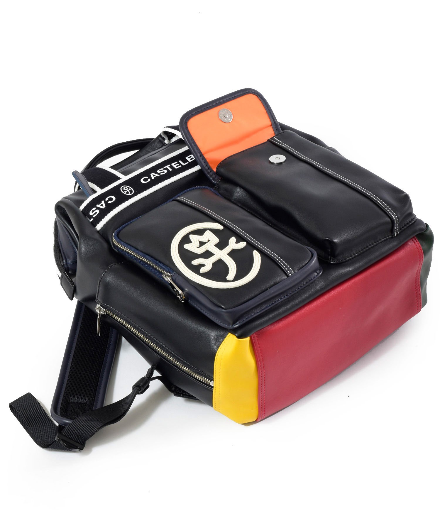 リュックの底面はカラフルな原色でデザインされています。