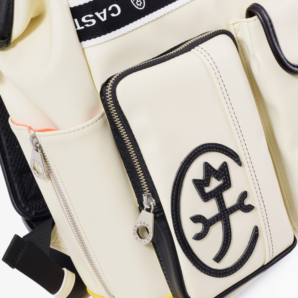 ベーシックな本体カラーにカステルバジャックらしい4原色がちらりとのぞく配色がポイントのドミネシリーズのカジュアルリュック。マチ付きの便利な外ポケットや870gと軽量な仕様も魅力です。大きな開口部からペットボトルやA4ファイルなどをすっぽりと収納でき、お出かけや旅行に便利なサイズのリュックです。