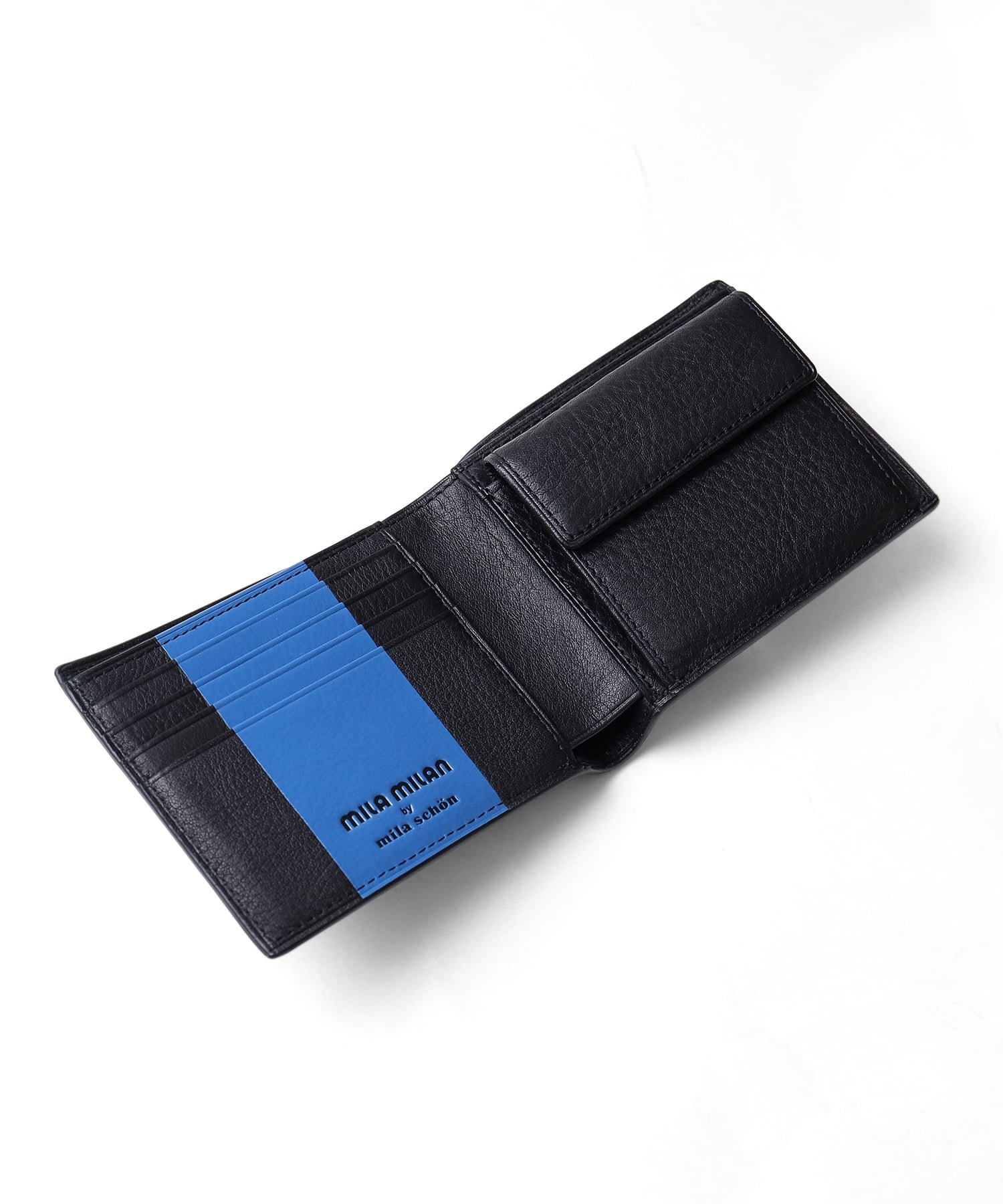 パッと前を惹くポップなカラーバリエーションと発色の良い色が魅力の、ミラ・ミランの二つ折り財布。内装には本体カラーと同じカラーラインが入っており、細部までポップさにこだわったデザインに仕上げています。