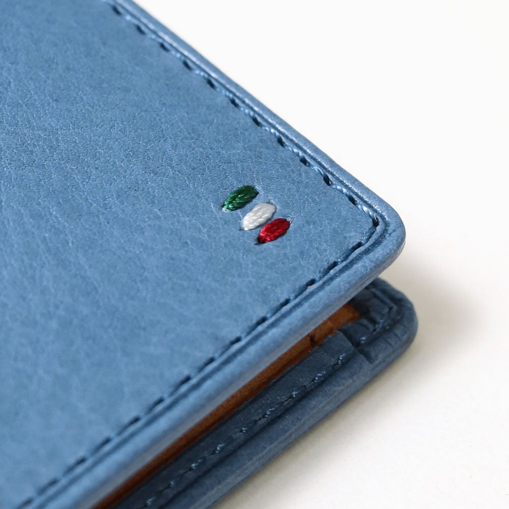 サスティナブルなヌメ革を使用した、革本来の風合い楽しめる二つ折り財布。スーツのポケットにもスッと収まる薄さが特徴です。