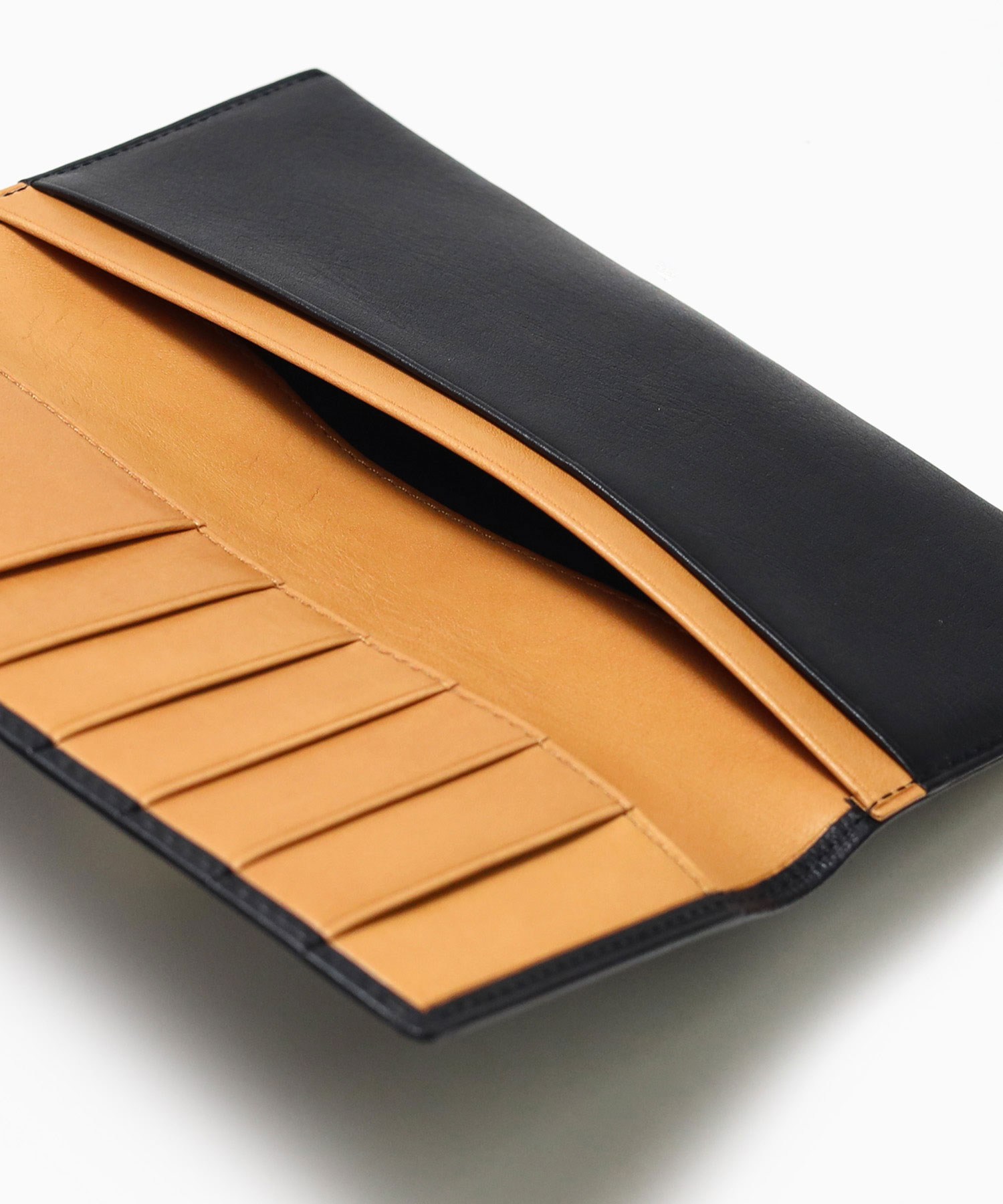 サスティナブルなヌメ革を使用した、革本来の風合い楽しめる長財布。スーツのポケットにもスッと収まる薄さが特徴です。