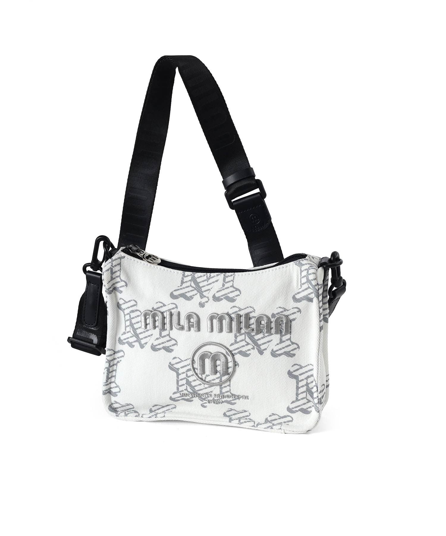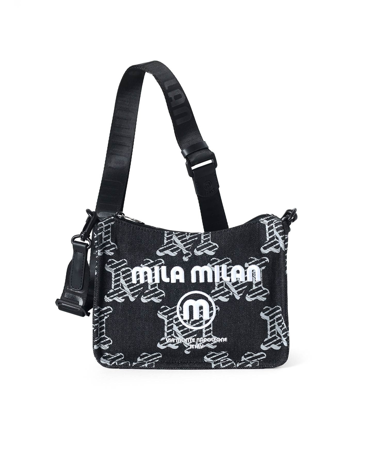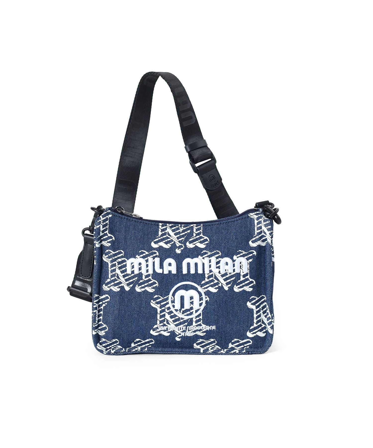 デニムのようにエイジングがかった生地に、ジャガード風プリントのモノグラム柄がポイントのmila milanのミニショルダーバッグ。 とても軽量に仕上げており、日常使いに活躍するカジュアルバッグです。