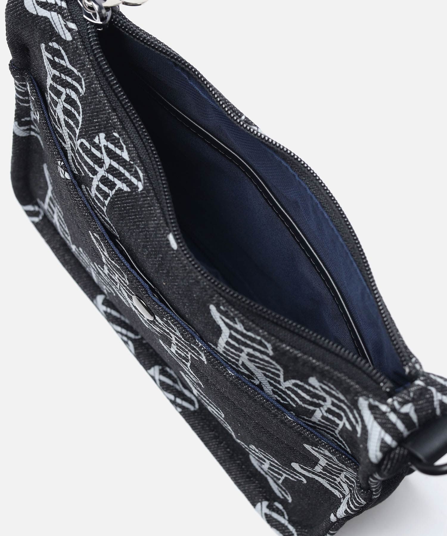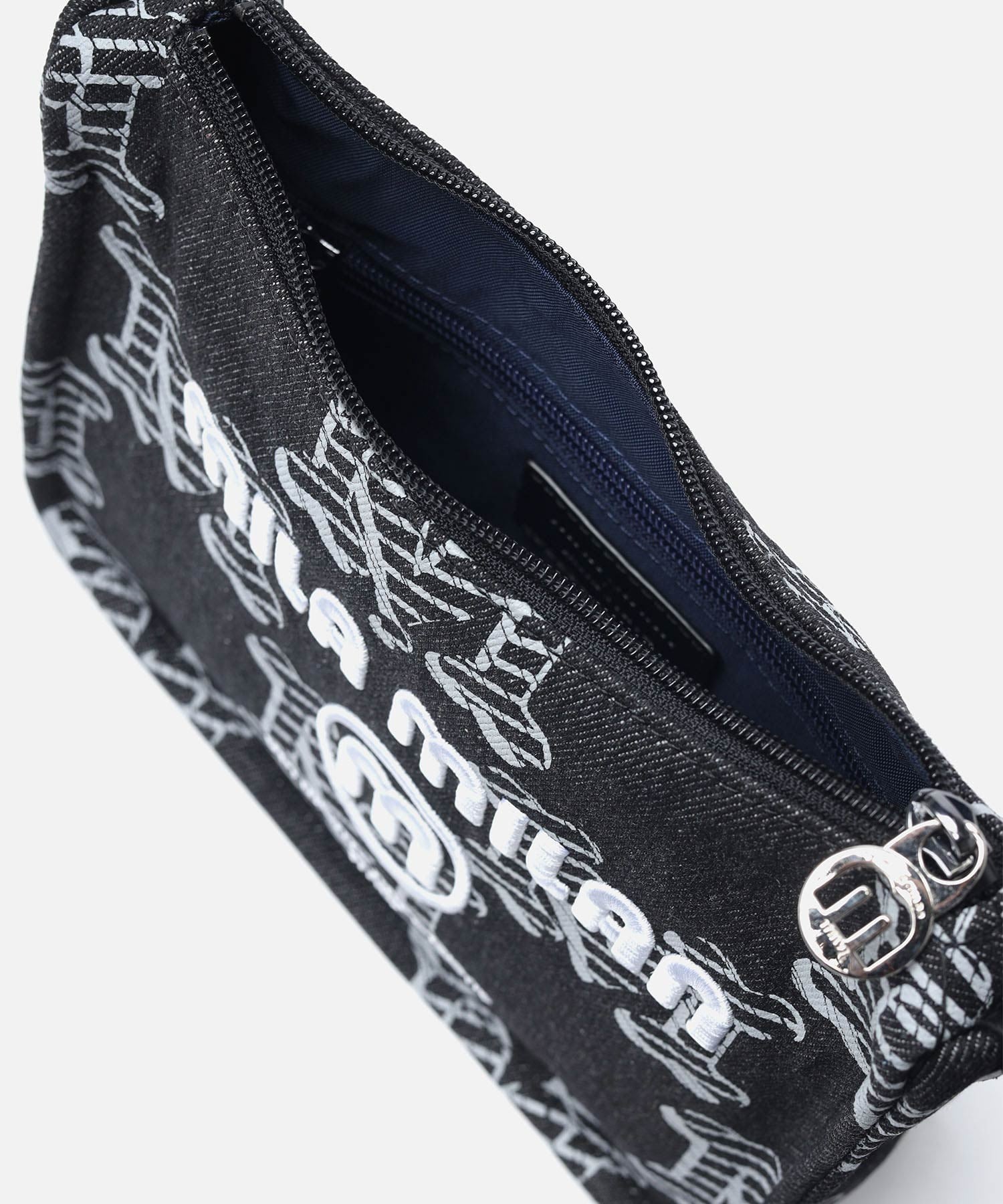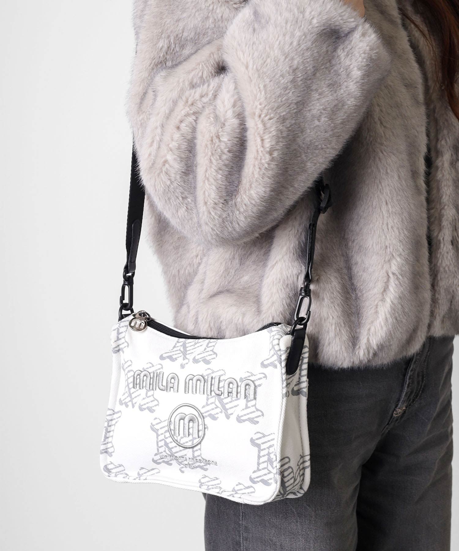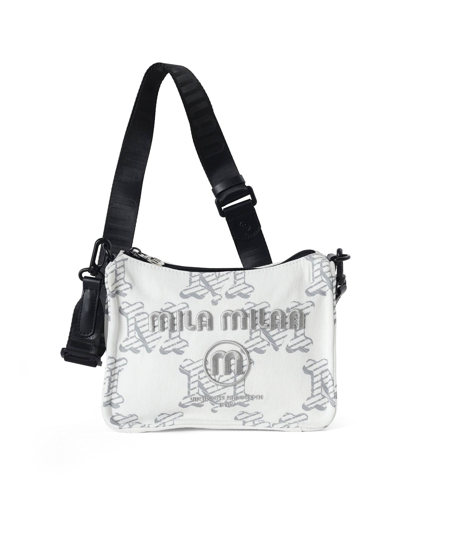 デニムのようにエイジングがかった生地に、ジャガード風プリントのモノグラム柄がポイントのmila milanのミニショルダーバッグ。 とても軽量に仕上げており、日常使いに活躍するカジュアルバッグです。