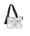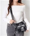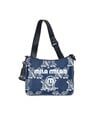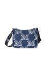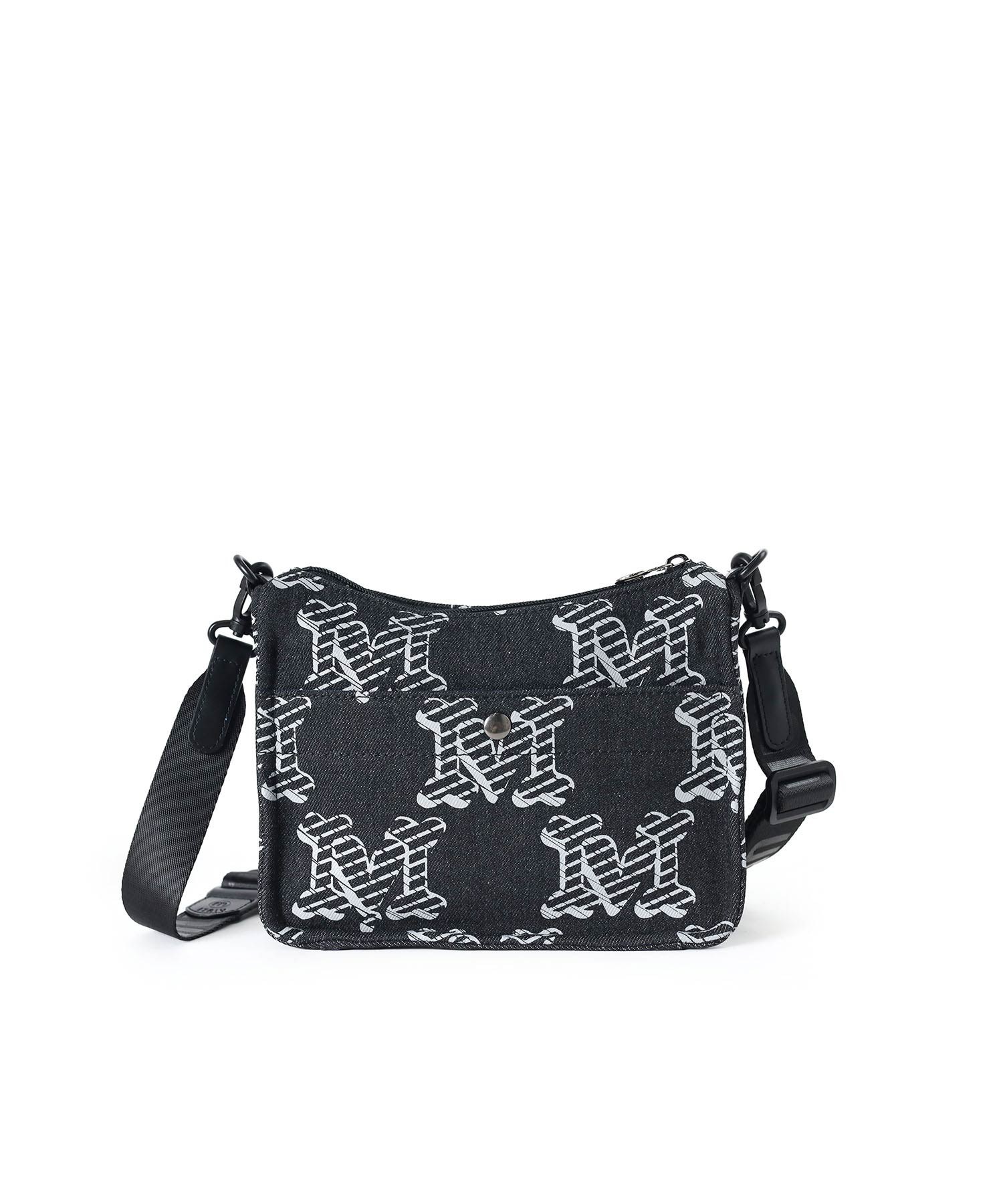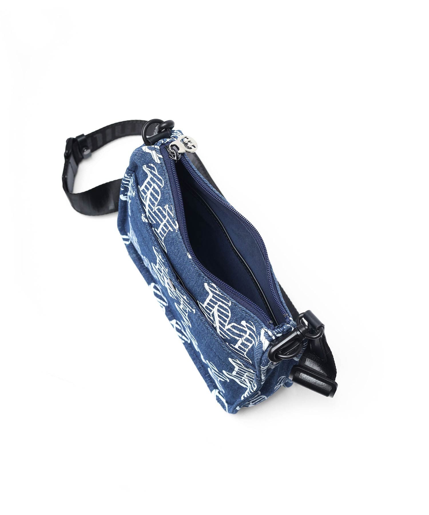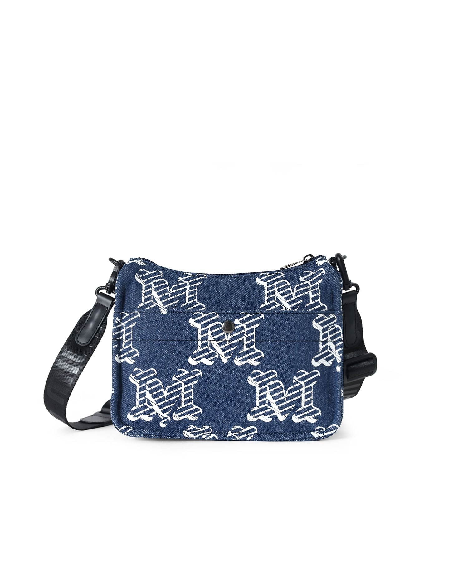 ミラミランの軽量デニムショルダーバッグ。洗いをかけて少しエイジングがかったような生地に、ジャガード風にプリントしたブランドモノグラム柄がポイントです。ポリエステル混紡素材なので、とても軽量に仕上がっています。